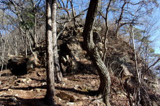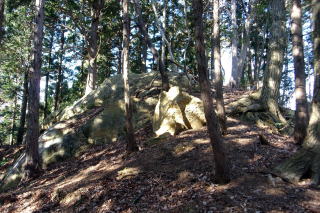 傾斜が緩んで植林帯から雑木帯へ出て再び急登、岩斜面の1つ目の危険地帯を通過します。次いで2つ目の危険地帯を通過、傾斜が緩んで6月ならあのお花が咲くコブを通過します。 次はほぼ直角に右に曲がる尾根から左植林地、右雑木の支尾根先の山頂岩尾根下に到着で小休憩を入れます。 あのお花の丘 急登左上へ 急登右上へ ![]() 3つ目の危険地帯の岩壁は左から取付き、右上ですが、今日は左斜面を登ってみました。途中で右に進んでイワイワの支尾根に出て左上に登ります。 山頂の基部は左から 展望小ピークへ ![]() 11時25分到着の展望小ピークからは背後に180度の展望が広がっていました。 雨乞山 鞍掛山 鞍槍 日光連山 ![]() 12時18分撤収、奥の石祠に挨拶して奥に進みます。ゆるいアップダウンの細尾根、東西の主尾根に出て左上へ、小さなコブを2つ越えて池の鳥屋南端の岩は右から巻いて今年お初の山頂には12時37分の到着でした。 南端の大岩 池の鳥屋名板 ![]() 帰路は本線に戻って西進、倒木の障害物を3箇所通過し、12時58分、分岐ピークで鳩首会談で左の行者岩経由でショートカットです。13時08分に行者岩を通過し、次の展望岩場で右に鞍掛山を見て、その先の不明瞭になった分岐で右のマイナールートを下ります。 分岐ピークは左下へ 行者岩 ![]() 落ち葉に隠れた踏み跡、支尾根先端で右へ方向を変えて下ると小広場です。右に広場を横断し砂利道から舗装路、そして旧新里街道に出て左折するとすぐに新里街道に出ます。おあとは歩道を下るだけです。2台から6台に増えた駐車場には13時30分の到着でした。 駐車場(0:50)展望小ピーク(0:19)池の鳥屋(0:21)分岐ピーク(0:10)行者岩(0:09)分岐(0:12)駐車場 所要時間は2時間55分(歩行2時間01分)、展望のランチハイクでした。 |