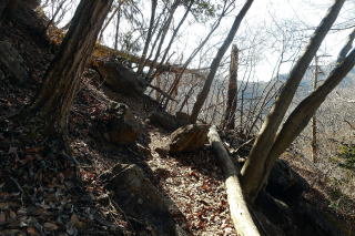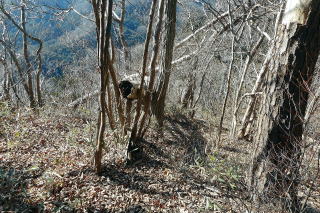 ① 01月20日 編 2023年01月20日のお山めぐりは今年お初の鞍掛山です。 正規の登山口手前の駐車場には先客が3台、Y字路の空地に駐車し10時18分に出発です。正規のルートの参道を登って行くと分岐手前で男性とスライド、分岐で少考、今回は右上の直登ルートへ入って行きます。ジグザグ登りで左に大きな岩を見て右に進むと南からマイナールートと合流する地点で左上に登ります。 駐車場所 合流地点は左上へ ![]() 岩場から土道へ、傾斜が緩んで右へ進みますが、今回も東の松島への入口に気が付かず通過してしまったようで、晶子岩の表示の岩を右に見て大岩南のピークを通過し下りになって左下からの正規ルートとの合流点です。一息入れて北上、男性1名とスライドします。古賀志山の展望広がる大岩は無人で、ランチ休憩にしました。 鞍部先で右に池の鳥屋・半蔵山 大岩から古賀志山 ![]() ランチを終了し、まったりしていたら女性2名が山頂方向から来ました。入れ替わりに席を開けます。登りで右が開けて先週登った池の鳥屋、その向こうに半蔵山・石尊山・土平山が目に入りました。少し先で右下への明瞭な踏み跡を見送って今年お初の山頂は11時52分の通過です。 右に窓が開けて 鞍掛山頂 ![]() 前回は左に鎖付きの参道を下りましたが、今回は鞍槍・古賀志山に向かい、途中の小ピークを直進で尾根下りです。一か所倒木が塞ぎ、踏み跡が消えた尾根、もう一か所は急降下ですが、右から巻いて通過しました。一か所記憶にあった展望所から古賀志山塊、右の木の間に皇海山も目に入りました。 小藪の尾根を 展望所から古賀志山塊 ![]() 何年振りかの尾根末端は左に下って緩斜面を見つけ、植林内の作業道をジグザグに下ります。一か所作業道をショートカット、猪倉峠からの砂利道に出て左へ進み、ニッセイの森の板を右に見て駐車場所には12時54分の到着でした。 駐車場所(0:13)分岐(0:40)大岩(0:07)山頂(0:08)古賀志山分岐(0:41)砂利の林道(0:13)駐車場所 所要時間は2時間36分(歩行2時間02分)、展望・小藪のランチハイクでした。 GPS軌跡図(カシミール3D使用) ![]() |