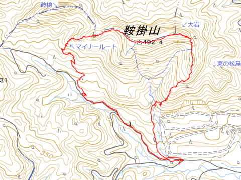 ② 10月25日 編 2023年10月25日のお山めぐりは今年2度目の鞍掛山で単独行です。 正規の登山口手前の駐車場所には先客1台、右の駐車地に駐車し、9時25分に支度中の男女より先に出発、今日は単独行です。 最初の分岐で1月20日と同様に右上へ、いくぶん色づいた葉っぱを見ながら左上の急登斜面を登って行きます。東の松島への入口を気づかずに過ぎて昌子岩と表示の大岩、そしてピークを越えて下った鞍部の分岐は直進で登り返しです。 右に開けた窓から半蔵山方面を眺め、10時07分に後発の2名の男女のいる大岩到着です。パノラマをデジカメに収めて奥の鞍掛山の三角点と名板のご挨拶、今日は大岩の戻ってから正規の登山道の下りです。2台の停まる駐車場所には10時51分の到着でした。 駐車場所(0:12)分岐(0:31)大岩(0:06)山頂(0:06)大岩(0:21)分岐(0:09)駐車場所 所要時間は1時間26分(歩行1時間25分)、展望・小藪のランチハイクでした。 |