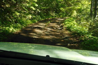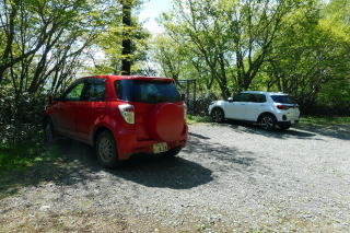 ネットで情報収集の赤埴林道、とあるレポには多少の線キズ覚悟の入山とあり、記憶のなくなった同林道に車を入れます。おっかなびっくりの未舗装林道は多少の凹部はあるものの凸部は車高18センチ超のロッキーは問題なし、郡山ナンバーさん1台の終点駐車場に8時45分に到着でした。