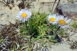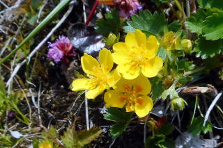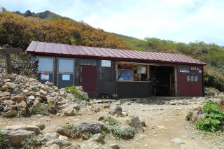 稜線から少し離れて初見のアズマギク、分岐に戻って磐梯山に向かいます。急登からいったん緩んだ登山道沿いにミヤマキンポウゲ、イワカガミが満開状態です。黄金清水で冷たい水を一杯入れて再び急登から弘法清水小屋を通過、ここまでくると猫魔八方台からのハイカーが休んでいました。