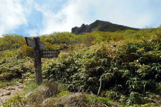 猫魔八方台分岐と磐梯山 弘法清水小屋