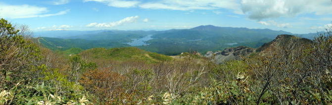残念ながら手前の雲で飯豊連峰の上部は見えませんが、猫魔山塊や山形県境、吾妻山塊、安達太良山は指呼の間にあります。ついでに3回に分けて動画も撮ってみました。