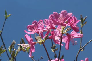 帰路は満開の桜を見ながら往路を忠実に戻ります。登山道途中にはコヨウラクツツジが目に入りました。