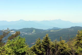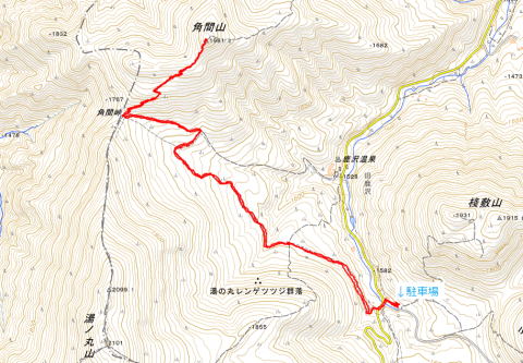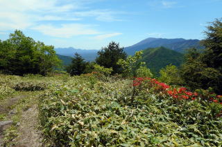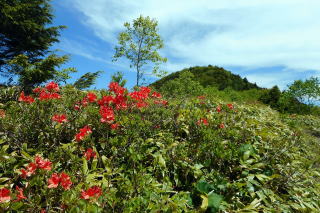 | 2023年06月17日のお山めぐりは、登り残しの角間山です。 桟敷山麓の2段の駐車場の下段に駐車、9時05分に出発します。幹線道路に出て左へ、右にカーブして3台駐車奥の湯の丸牧場内の未舗装道路を登って行きます。左上から右上に方向が変わって足元には黄色のウマノアシガタ、白のシロバナノヘビイチゴの花、傾斜が緩んでかつて牧場だった平原の十字路を通過します。 角間山を見て出発 右側が登山口 ![]() 正面左に湯の丸山北峰、背後に桟敷山、左のコンコン平方面に登る歩道の両側にワラビ採りの女性2名が目に入りました。奥に進んで徐々に高度を上げるとともに満開状態のレンゲツツジが続々と出てきます。 今日はいい天気です。正面に冒頭画像の角間山、背後に桟敷山・西篭ノ登山が浮かんでいます。 十字路へ 背後に桟敷山 ![]() 左上に東屋を見て牧柵を越えると右にトラバース道に入り、右下からの登山道と合流し、左上に向かいます。相変わらず両側にレンゲツツジが次々と現れます。男性ハイカーとスライド後、2名の男女が休む左の東屋を見て丁字路分岐に出ます。左は湯の丸山ですが、今日は右の角間山です。 登山道は尾根の右側をジグザグに高度を上げて行き、その都度、浅間山から湯の丸山の見える角度が変わって行きます。池の平湿原のピークと湯の丸山の間の鞍部に富士山を見て、デジカメを望遠にして撮影します。 浅間山から池の平 その右下に富士山 ![]() 登る途中で数名とスライド、人気のないお山のようですが、さすがオンシーズンの土曜日です。おおっと右奥に紫色のツツジが見えますがこれは帰りに寄りましょう。 湯の丸山 帰路のムラサキヤシオ? ![]() 傾斜が緩んで平らな尾根上に出るとレンゲツツジ越しに角間山のピークが目に入りました。右の樹上には浅間山方面が見えます。道は樹林帯に入り、針葉樹帯になると左へ、奥で大きな動物(多分鹿)が下る音が聞こえました。 角間山ピーク ↓浅間隠 ↓浅間山 ![]() 登山道は右上に方向を変え、今日初めてで最後の鎖場を登ります。登り切って左上に方向を変え、視界が開けて11時ちょうどに展望360度の山頂に到着でした。近くは四阿山や浅間山から湯の丸山、遠くに御嶽山から北アルプス、懐かしの焼山から妙高山の頚城三山がくっきりと見えます。 懐かしの頚城三山 根子岳・四阿山 ![]() 先客は2名の男女×2、単独行男性の計5名、ほどなく男女2名は鍋蓋山へ、男女2名は撤収、私たちは山頂北側の一角でコーヒーを入れて約50分のランチ休憩です。たっぷり動画も撮ってみました。 浅間山方面 コケモモの花 ![]() 11時46分に撤収、往路を忠実に戻ります。直下でPさんがコケモモの花を見つけました。針葉樹の樹林帯を下り、雑木帯になって2名の男女2組とスライド、この後は鹿沢温泉分岐で足の太い男性とスライドが最後のハイカーでした。駐車場所には13時ちょうどの到着でした。 駐車場(0:03)登山口(0:18)十字路(0:37)鹿沢温泉分岐(0:14)角間峠(0:40)角間山(0:27)角間峠(0:07)鹿沢温泉分岐(0:26)十字路(0:13)登山口(0:03)駐車場 所要時間は3時間55分(歩行3時間08分)、展望・レンゲツツジ最盛期のお山めぐりでした。 |