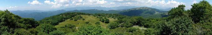 ① 横根山(1372.9m) 編 暑さ真っ盛りの日本列島、軒並み高いお山の午後は雨、3連続で日延べの男体山から予定変更で今年2度目の横根高原へ・・・。多少は気温低いっしょ( ´艸`) 2023年07月30日のお山めぐりは前日光牧場から横根山です。 さすがに盛夏で、前日光牧場の駐車場は先客も少なく、労せずして最上部に駐車できました。10時04分に出発、今日は象の鼻から井戸湿原、そして横根山と回ることにして、横根山への登路はパス、道なりに直進です。 |