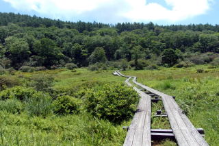 白っぽい花はリョウブ、ノリウツギ、右下の草地には鹿さんが、10頭近くこちらの様子を伺っていました。象の鼻には男女2組が休憩中でした。展望台から眺めていたら勝雲山の右(北)半分にバリカンが入っていました。奥の展望台でパノラマをデジカメに収めて井戸湿原に向かうことにしました。 昨日今日の予定だった日光男体山は雲の中 ![]() 湿原西部に出て左の湿原荘への分岐は直進、次の分岐も直進で五段の滝に向かいます。こちらでは数名の男女とスライド、五段の滝のダイモンジソウはまだまだ、タマガワホトトギスの黄色い花は残り花でした。 五段の滝 タマガワホトトギス ![]() 五段の滝分岐に戻り、反時計周りで左岸を登って行きます。足元にはヒメシロネ、オトギリソウが咲いており、十字路分岐で左の湿原中央部を覗いてみることにしました。手前右でもうすぐ咲きそうなメタカラコウ、中央部近辺でウスユキソウ、チダケサシが咲いていました。 北上して十字路分岐を通過、少し登って湿原荘前で日影にあるベンチ・テーブルセットでお湯を沸かしてランチ休憩です。貸し切り状態から3名の親子連れが東屋へ入って行き、ランチ終了間近で十数名の団体さんと入れ替わりに横根山に向かいます。 2つの小ピークを過ぎ、小さなコブを越えて最後の登りは伏木の階段道で、一回息を整えて今年2度目の横根山でした。東屋で小休憩で展望のなくなった山頂を後にします。 井戸湿原中央部 横根山の三角点 ![]() 幹線道路に出て左へそしてすぐに右ですが、左の象の鼻方面から先ほどの団体さんが歩いてきます。駐車場に戻ってみると古峰ヶ原神社前で日瓢鉱山方面へ進んで行った桜川市のバスが停まっていました。後の団体さん御用達のバスだったようです。 所要時間は2時間38分(歩行1時間55分)、いつもと逆の反時計周り、真夏のトレーニング歩きでした。 |