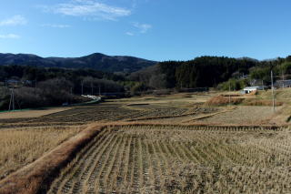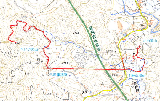 | ① 白狐山 編 2023年12月20日のお山めぐりはいわき市の地形図無名峰「白狐山」から「いやの山」の予定でした。「でした。」というのは周回の予定が、時間の都合でピストンピークハントに変わったからです。 幹線道路から右に入った路肩に駐車、13時27分左(北)に白狐山を見て東進、分岐は左へ舗装路を登って行きます。右上の民家前を通過し舗装路は左へ方向を変えて西進、白狐稲荷の手前で右上に登る細い農道を選択し、獣除けの電線を通過します。 |
