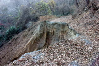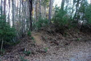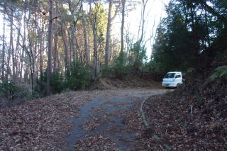 | 農道は右へそして左上へ方向を変え、シノダケの短いトンネルから樹林帯の踏み跡に変わり急登です。南植林地、北は雑木の東西尾根へ出て右(東)上の高みに直登です。杉の木立に囲まれた山頂には名板も何もなし、東は急降下、北側に見える道型は地形図実線路か? 農地内の農道 これが実線路 白狐山の山頂 そさくさと撤収、往路を戻ります。シノダケの短いトンネルを抜けて農道に出て、途中で右の白狐稲荷神社へ出て参道を下ります。当初計画はここから西のいやの山ですが、時間を見れば押してきています。幹線道路に出て反時計周りに駐車場所に戻ることにしました。 ② いやの山 編 さてさて車で鹿島神社近くの広い路肩に駐車、14時05分に出発です。鹿島神社は帰りに寄ることにして北上、高台の舗装路からは右に展望が広がります。左上に見える雑木のピーク上部はこれから向かういやの山でしょうか?道はいったん下って、右に向かう平方面の右に向かう道を見送って直進で登りになります。 左にカーブして民家脇を通過すると植林帯の急登です。右にカーブし、傾斜が緩んでいわゆる峠、直進と左上の分岐に出ます。 中央奥がいやの山か? 峠で左上へ ![]() めざす「いやの山」は左に登る砂利道です。道が左に回り込み、植林帯が切れて直線になると舗装されています。左にカーブしながら登り右に方向を変えると支尾根を横断、先に軽貨物が停まっています。その先の林道は崩壊、二つ石山、三大明神山方面は走行不能状態です。 いやの山は直進 林道崩壊箇所 ![]() さて、いやの山は尾根の左側ですので、戻って獣道らしき踏み跡を登ると獣ワナの表示があり、その先の微小な高みが333m評点ピークのようです。本日ここまで、ワナ場を荒らさないよう撤収です。 取り付きの踏み跡 いやの山頂 ![]() 帰路は往路を忠実に戻ります。最奥民家前でトラック同士がお見合い、下のトラックが延々とバックして無事スライドしていました。陽が落ちて暗くなってきた集落、鹿島神社に狛犬なしを確認して駐車場所には15時10分の到着でした。 ① 白狐山 駐車場所(0:07)取り付き(0:06)白狐山(0:07)白狐稲荷神社 (0:10)駐車場所 ② いやの山 駐車場所(0:22)峠の分岐(0:13)いやの山(0:10)峠の分岐 (0:19)駐車場所 所要時間は1時間43分(歩行1時間34分)、山頂は展望なし、狛犬探索とコラボの地形図無名峰ピークハントでした。 当初目的の干支のお山は強風で急遽予定変更です。次点の高いお山も放射能がきつい山域なのでテンションは下がる。さらに今宵は雪もちらつきそうな予報で、明日も狛ちゃんコラボの地形図無名峰めぐりになりそうだ。今日の宿泊先はここから20分ほどか、16時までには間に合いそうだ。 |