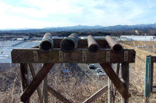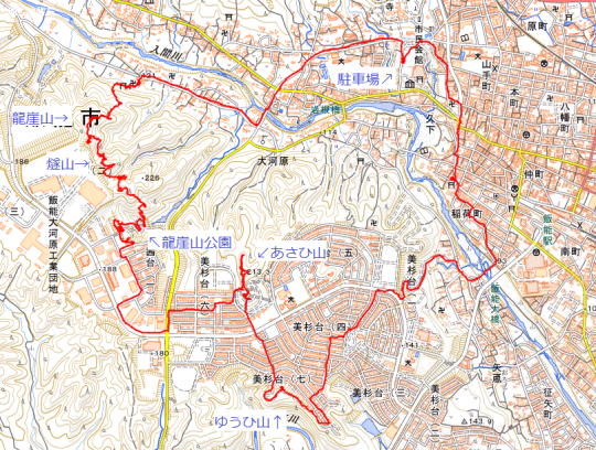 | 軍荼利神社脇が登山口で杉林の細道に入ります。道は左へ、そして「第一ロープ坂」の案内板を見て伏木の階段道の急登です。傾斜が緩んだ三四郎平には男女2名、道は緩やかで遠い左、「第二ロープ坂」の右ですが、後者を選んで登って行くとまたも伏木の階段道の急登で後続の男女に先を譲ります。 中間地点に「無料休憩所」の板、右上に再び伏木の階段道で龍崖山の平らな山頂には10時05分の到着でした。ザックを下ろしてデジカメ撮影タイムです。竹筒のお山同定機?が2方向に複数付けられています。 竹筒が武甲山・天覚山を 多峯主山方面 ![]() リスタートで龍崖山公園1,200mの案内板に従って奥に下るとすぐに分岐で右の富士山見晴らし台に行ってみました。やはり竹筒が設置されており、予定外の青空で富士山も見ることができました。 竹筒が富士山ほかを 白く富士山 ![]() 登山道に戻っていったん下り、岩場を越えてベンチ3基のある燧山の右に窓が開いて、再び富士山を見ました。公園まで780m、今日はもうひとつピークを越えなければなりません。次のピークもジグザグ下り、ジグザグ登りのオンパレード、展望はありませんが、ベンチで息を整える小休憩です。 最後の下りもジグザグで、龍崖山公園の登山口には2本の竜を刻んだ木柱(門柱?)が立っていました。直登の階段道はリハビリあけのPさんは✖で緩やかな舗装路を登り返し、次の段の広場でランチ休憩です。 燧山 ベンチピーク ![]() 西側の斜面にはロウバイ、北斜面には紅梅が咲き始めており、5分以上の開花の梅もあり、香りが漂っていました。 さて、次はあさひ山です。上段の龍崖山公園から右へ左へそして右へ、GPSの画面を見ながら幹線道路に出て左へ、十字路を渡ってすぐに左へ、そして右へ、丁字路の公園を横切って、あさひ山公園最奥部へ登ります。270度の展望はあとにして、公園の左奥の高みを探索、三等三角点を確認しました。 5分咲きの紅梅 あさひ山の三角点 ![]() 植林内で展望なし、そさくさと撤収で適当に取り付き口に戻ります。あさひ山公園を左から右に周回し展望をデジカメに収めます。 あさひ山公園から左半分 ![]() ゆうひ山をデジカメに収めて舗装路へ、幹線道路を横断し団地内を西下、ゆうひ山公園に入って右上に細道が登っています。 右から左上へ登り、2回緩んで最後の山頂からは東に少しだけ窓が開けて、さっき歩いたあさひ山が目に入ります。おっとデジカメの電池が切れたので電池交換後にリスタート、反対側に幅広踏み跡を下ります。 あさひ山公園からゆうひ山 ゆうひ山からあさひ山 ![]() おあとは団地内に出て西端を回り込んで北上、そして北東へ、うまく幹線道路に出てすぐに左の支道へ下り、飯能大橋北側のおそらく旧道の橋を渡って左上へ登って行きます。秋葉神社で古い狛犬さんに御挨拶、もう一か所の神社は道間違いでパス、駐車場には13時56分の到着でした。 駐車場(0:23)八耳堂(0:25)龍崖山(0:04)富士山見晴らし台(0:14)燧山0:24)登山口(0:06)龍崖山公園(0:23)あさひ山(0:13)ゆうひ山(0:40)秋葉神社(0:14)駐車場 所要時間は4時間46分(歩行3時間06分)、展望また展望のリハビリ周遊ピークハントでした。 当初予定は昨年末の天覧山・多峯主山・兎岩でした。今日は今年の干支に合わせて龍崖山です。思いがけず青空の天気、噂にたがわぬ大展望です。さてさて市営駐車場南の神社の狛犬さんはパス。次回は神社も併せて天覧山・多峯主山・兎岩でしょう。 |