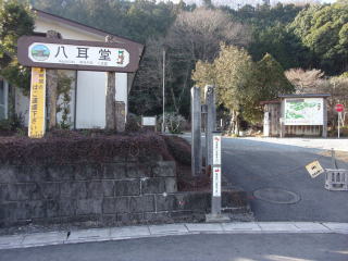 | 2024年01月19日のお山めぐりは埼玉県飯能市の龍崖山です。 市民会館そばの駐車場から9時11分に出発、能仁寺前の丁字路を西へ、そして南西へ下り、入間川に架かる橋を渡って右折します。右の民家の開花してロウバイを見て、取り付きの八耳堂で狛犬さんに御挨拶、地元の男性からお声がけいただきました。 |