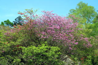 ② 横根山から井戸湿原 編 2024年05月22日のお山めぐりは横根山(1372.9m)から井戸湿原です。 もうヤマツツジの季節だろうなあ。今年はツツジのハズレ年だからシロヤシオはどうだろうか。ランチハイクでちょっと覗いてみましょう。 高曇りの横根高原牧場の駐車場上部は満杯、すぐ下の駐車場から11時07分に出発です。牧場内道路への入口で3名とスライド、道路沿いには盛期を過ぎたズミ、いまが盛期のヤマツツジ、横根山の取り付き口を左に見て直進から右にカーブの未舗装道路を進んで行きます。 象ヶ鼻の展望台の手前にあるシロヤシオに花は無し、先の展望台には8人の男女、左のテーブルベンチ席にも数名がおります。眼下の牧場のズミとヤマツツジの花、午後の勝雲山ほか展望をデジカメに収めていちばん奥のテーブルベンチでランチ休憩にしました。 展望台には8人 ↓勝雲山 ![]() さて、次は井戸湿原です。仏岩前を通過し2人の女性とスライド、下る登山道沿いには花がほとんど落ちてしまったミツバツツジ、終期に近いズミの白、盛期のヤマツツジの赤が目に入ります。獣除け柵が近づくと赤が目立ってきました。井戸湿原は盛期に近いヤマツツジがほとんどでした。 井戸湿原 中央部南のヤマツツジ ![]() しばらく行っていない見晴台に向けて南に登って行きます。ちょっとだけ視界が開けた見晴台、ここもヤマツツジが目立ちます。戻って尾根上を東進、GPSの地図上の破線路を左にキックバックで戻ろうとしますが踏み跡が分かりません。 そのままトラバース気味に下って先ほど歩いた尾根上から下る明瞭は踏み跡に合流してホッとひと息でした。右下に下る踏み跡は左右に分かれます。とりあえず左を選択します。2本の小沢にかかる木橋を渡り、右下に獣除け柵の出入り口を見てホッとしました。 井戸湿原の中央部に下って木道を北上、ヤマツツジの中を登り返します。一本だけミツバツツジの盛期の花が残っていました。 先行者を追って ミツバツツジの紫 ![]() 上部のベンチで小休憩、一息入れて横根山に向かいます。行く先々で見るのはヤマツツジの赤、午後の反時計周りではスライドはありません。無人の横根山は証拠データを撮ってすぐに撤収です。山頂直下で雲が取れた袈裟丸連峰のパノラマをデジカメに収めます。 山頂直下からのパノラマ ![]() 下りきってPさんと協議、出発の遅れた今日は方塞山はパス、横根高原牧場から車で移動、ツツジがあるか?勝雲山の山頂から数年先にはなくなるであろう展望をデジカメに収めることにしました。 駐車場(0:25)象ヶ鼻(0:15)井戸湿原(0:10)見晴台(0:31)東屋前テーブルベンチ(0:22)横根山(0:19)駐車場 所要時間は2時間48分(歩行2時間02分)、困ったときのお山の花探索でした。 |