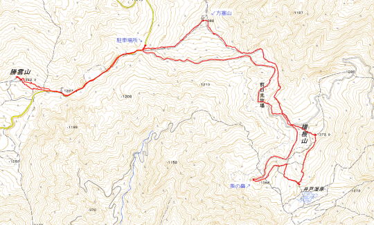 ① 勝雲山 編 2024年05月22日午後のお山めぐりは勝雲山(1322.2m)です。 勝雲山取り付き口手前の駐車場に車を止めて出発、登りは取り付き口からです。相変わらずの伐採地の展望、右に方向を変えてズミ、ヤマツツジの花を見て登り切った山頂の左にも背の高いヤマツツジがあります。 勝雲山の山頂 三角点へ ![]() 奥の三角点に寄ってから、さらに西進で180度の展望をデジカメに収めて三角点に戻ります。 180度の展望 ![]() さっき歩いた横根山、パスした方塞山をデジカメに収めます。山頂には戻らず、伐採作業道を戻ります。 駐車場(0:01)取り付き口(0:09)山頂(0:01)三角点(0:07)伐採作業道入口(0:01)駐車場 所要時間は29分(歩行19分)、展望の小さなピークハントでした。 次は避暑の8月、そして紅葉盛期の10月末でしょうか。 |