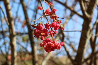| ⑦ 11.04 方塞山から三枚石 編 今日は快晴のようで足がうずうずのPさん、振替休日の日光方面は避けて今年7度目の横根高原を覗いてみることにしました。 2024年11月04日のお山めぐりは方塞山で井戸湿原か古峰ヶ原湿原かは現地で判断です。 前日光ハイランド入口南の駐車場から10時05分に出発、丁字路北側にある方塞山への踏み跡を登って行きます。左のカラマツ林の中にときどき紅葉・黄葉が目に入ります。2度ほど傾斜が緩んで左に方向を変えると右の牧柵越しに横根山が見えますが南風の影響か雲がかかりつつあります。 登山口は左端青い板 横根山 ![]() 今年2度目の山頂でPさんと協議、左の三枚岩方面に向かいます。緩い下りの登山道の両側にモミジの紅葉・タカノツメの黄色、コシアブラのうすい黄色が現れます。ツツジ平手前で数名の男女、続いて2名の男女とスライドします。ツツジの赤、ズミの赤い実を見上げながら通過、少し登りで到着の三枚石では男女が休憩中でした。 紅葉 三枚石 ![]() 入れ替わりになったところで、12時前ですが右の低い岩に腰かけてランチ休憩にしました。古峰ヶ原方面から来たハイカーが後を通り過ぎて行きます。34分の休憩で撤収、まずは三角点に寄ってから北に下ります。こちらも左右にズミの赤い実を見ながら通過します。 ズミの赤い実 点名「古峰ヶ原」の名板 ![]() 今日の紅葉・黄葉は当たりでした。1kmぐらい下って軽装の外国人家族連れ数名とスライド、左右の色付きを見ながら下ります。左の尾根上をカメラを持った男性が登って行きます。キャンピンクカーほか数台が停まっている古峰ヶ原の駐車場から湿原沿いに左に下って行きます。 湿原の樹木にはズミの赤い実、背丈の低い樹木のグミのような赤い実はメギでしょうか、見上げるような樹木から下がっている実はマユミかツリバナでしょう。(帰宅してからネット情報を確認、中の実が4個ならマユミ・5個ならツリバナですが未確認) メギの実か マユミ濃厚 ![]() 深山巴の宿付近はモミジの赤がいっぱいでした。舗装路に出て左へ、両側の紅葉を見ながら舗装路を登り返します。往路で気が付かなかった方塞山登山口の上部の真っ赤なモミジを見て駐車場には13時58分の到着でした。 駐車場(0:32)方塞山(0:36)三枚石(0:06)点名「古峰ヶ原」(0:38)古峰ヶ原湿原駐車場(1:17)駐車場 所要時間は3時間53分(歩行3時間09分)、紅葉・黄葉の周遊ピークハントでした。 |