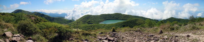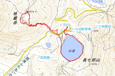| 2024年06月05日のお山めぐりは群馬県前橋市の地蔵岳です。 小沼駐車場から7時41分に出発、西進して約4分で右上に進む未舗装道路へ入ります。奥は八丁峠駐車場ですが車はありませんでした。のっけから木製の階段道で、ズミが咲いています。いったん緩んで左上に方向を変える所は岩ゴロゴロの道、すぐにジグザグ登りが始まり、ヤマツツジ、レンゲツツジが彩どりを添えます。 八丁峠駐車場 ズミ満開 ![]() Pさんやや不調で女性ハイカー1名に先を譲ります。再び木製の階段道になって右上に方向を変えます。破線路は直で登っていますがこれは帰りに下りましょう。右上に進んで視界が開けて、右に長七郎山方面のパノラマが広がります。先ほど右上のピークにいた男性1名とスライド、道は左右が雑木で覆われます。 三度目の木製の階段道からザレた斜面に出て、左上に連続する電波塔、正面に再訪の標柱と石祠が見えます。8時31分、2007年以来2度目の地蔵岳でした。 電波塔群 山頂の一角にて ![]() 一等三角点、展望をデジカメに収め、前回の地点で証拠データをデジカメに収めて撤収、電波塔群へ向かうことにしました。 真ん中に黒檜岳 ![]() 鉄塔群への踏み跡は明瞭、西進して広場?から南下、電波塔群の右から笹原の踏み跡をたどります。右に視界が開けて荒山のピーク、稜線を左に視線を移すと銚子の伽藍のV字の窪みが見えます。左に回り込んでざれた斜面に出ると180度の展望が待っていました。 真ん中に小地蔵岳・長七郎山と小沼 ![]() おあとはザレた斜面から明瞭な踏み跡を下ります。左右にヤマツツジ、レンゲツツジの左にミツバツツジの残り花を見て下りきった地点から左の往路を下ります。八丁峠駐車場には2台が止まっていました。途中からうっすらと踏み跡模様の獣道?か、登り切って石祠一基、名板が一枚の北山の山頂でした。 展望もない山頂からそさくさと撤収、西進してすぐに南に道なき笹原を下ります。さしたる障害物もなく、小沼に向かう遊歩道入口のある駐車スペースに飛び出しました。 おあとは花探索と最後の小沼一周ですが、希少植物の場所は秘諾ということで一部軌跡は割愛しました。 所要時間は5時間39分、展望・花探索の周遊ピークハントでした。 きょうは目的のカモメラン、望外のクワガタソウ、咲き始めのマイヅルソウ、クサタチバナと二方向のパノラマを見て満足のS&Pでした。 カモメラン クワガタソウだろう ![]() |