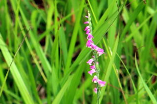 | ① 7月26日 編 2024年07月26日のお山めぐりは毎年御訪問の駒止湿原です。 今年お初の南郷のはね出しトマトは壮絶なる(笑)争奪戦の末にいくつかゲットし、お決まりの駒止湿原へ。駐車場には4台の先行車、今年は例年より30分以上早い9時30分に出発です。 舗装路沿いのトリアシショウマ、ヨツバヒヨドリ、サワヒヨドリを見て、遊歩道に入ってすぐにぶら下がっている鐘を叩き、さらに大谷地湿原に入る前にカネキャップを取り出して号砲一発でクマさんに御挨拶します。湿原に入ってにコオニユリ、コバノトンボソウ、今日の目的カキランをデジカメに収めていると後発の男性が追いついてきました。 クマさんに御挨拶 コバノトンボソウ ![]() 去年は7月27日でしたが、サワギキョウ、タチアザミが花を開いていました。今年は花の進みが早いようです。 サワギキョウ ほころび始めたタチアザミ ![]() 相変わらずこの時期花のない白樺谷地、中間部で鐘を鳴らし、樹林帯に入って三度鐘を鳴らします。水無谷地に入って男女2名とスライド、ミズギク、ネジバナ、ノリウツギをデジカメに収め、終点近くでエネルギー補給の小休憩です。後続の男性は昭和村入口方面へ、私たちは撤収です。 ミズギク ネジバナ ![]() おあとは咲き始めたヤナギラン、ミヤコグサ、ウツボグサ、ツルフジバカマを見て、駐車場には12時48分に到着でした。 ミヤコグサ ウツボグサ ![]() 所要時間は3時間18分、ときどき青空が覗いた駒止湿原散策でした。 |