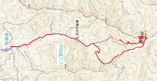 GPS軌跡図(カシミール3D使用) (南は左、北は右です。) ![]() |