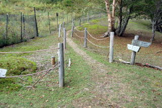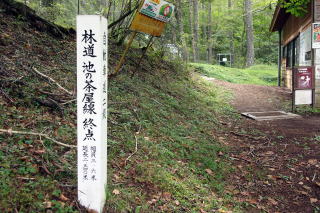GPS軌跡図(カシミール3D使用)![]() 「電子地形図25000(国土地理院)を加工して作成」 スズメバチ除けに標高の高いお山に来たのにハチ注意の板 1800mの高度だからクロスズメバチか・・・。 |