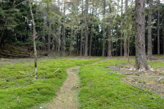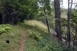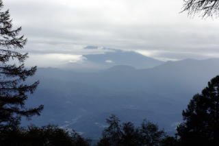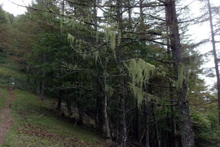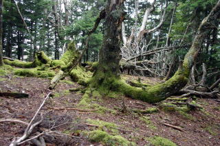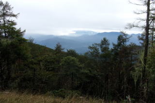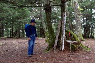 2024年09月25日のお山めぐりは山梨県の櫛形山です。 池の茶屋林道最奥の駐車場から9時ちょうどに出発、獣除け柵のドアを開けて登山道へ入ります。トリカブト、サラシナショウマの残り花、アキノキリンソウを見て、上部の獣除け柵を通過して右上へ登って行きます。尾根に出て登山道は左上へ方向を変えると2基のベンチ、右が開けていますが、遠くは雲がかかっていました。 小屋裏を抜けて左上へ 白っぽいトリカブト ![]() 尾根の右側の樹木には「そこ山」のレポで出ていたサルオガセがいっぱい下がっていました。9時14分に2箇所目の獣除け柵を通過、ジグザグ登りの両側は獣除けの網の壁、マルバダケブキ他の残り花を見ます。9時28分に左に南アルプス眺望ポイントですが、遠くは雲で隠れていました。女性、男性と相次いでスライドします。 カラマツ林にサルオガセ 眺望ポイントへ ![]() 帰路には天気がよくなっているだろうと、すぐに登山道に復帰します。足元のハナイカリの残り花、咲き始めのヤクシソウ・右に大きなダケカンバを見ると傾斜が緩み、2基のベンチでひと休みです。右に見えるべき富士山は胴体部分がほんの少し覗いているだけでした。9時34分に上の獣除け柵を通過、すぐに3か所目の獣除け柵を通過します。 ベンチが2基 富士は見えず ![]() 右にサルオガセがいっぱいの林、9時38分に3か所目上部の獣除け柵を通過します。尾根の右斜面を進む登山道、山頂手前の右の開けた窓から甲府市方面が見えます。9時46分、名板と三等三角点が待つ「奥仙重(2252.2m)」に到着でした。 ![]() 展望もなしでそさくさと撤収、奥に下ります。鞍部で右にベンチと展望ですが、遠くは雲に隠れていました。登り基調になってまたも右に展望が開けますが、富士山の下部のみのようでした。コケと老木が現れ、その間をジグザグ登り、女性一人がエネルギー補給中の櫛形山(2052m)には10時05分の到着でした。 今日はこれだけ 櫛形山(2052m) ![]() 山頂の東下に窓が開けていますが遠くは雲に隠れています。先客に御挨拶して裸山に向かって緩く下ります。原生林のコケに覆われた倒木、老木脇を通過しジグザグ下りです。網で囲われた保護地脇を通過し、10時18分下りきった先の丁字路分岐は左へ向かいます。 明るい平地の左側はサルオガセがいっぱい付いた木々があります。登山道が右に方向を変え、尾根の左を行く原生林内の登山道、10時26分次の丁字路分岐は直進です。この辺りもサルオガセがいっぱい見えます。原生林内のアオバヒョウタンボクの保護地脇を抜けて、次の保護地の獣除け柵を通過します。 コケの付いた老木 道は左へそして右へ ![]() 登りになって10時35分に獣除け柵を通過すると緩い下りになります。カラマツ林の左傾斜の中を緩く下りますが、樹木にサルオガセがいっぱい絡んでいました。10時43分、左に保護地の柵が現れ、ほどなく正面に裸山の丘上のピークトップ、そして十字路分岐に到着でした。 奥に裸山の山頂 十字路は直進 ![]() 左は左からの裸山、右はアヤメ平、私たちは直進の右からの裸山に向かうことにしました。10時48分到着の裸山からは左に往路の尾根と櫛形山のピーク、残念ながら富士山は見えません。右の木の間に間ノ岳・北岳方面が開けていますが、こちらも×でした。 ザックを下ろして休憩です。男性ハイカーはトレランか、櫛形山の女性も時計回りで通過します。今日の天気予報はハズレのようで、櫛形山も薄く雲がかかってきたので、S&Pも撤収、往路を忠実に戻ります。 裸山の山頂にて 富士は見えず ![]() 帰路の最初の獣除け柵を通過して、すぐ左に往路で気が付かなった推定300年のカラマツが目に入りました。無人の櫛形山、奥仙重で証拠データをデジカメに収め、南アルプス展望ポイントでランチ休憩ですが、雨粒がポツポツと落ちてきて、南西の丸山も薄く霧がかかってきたようで、急ぎ撤収することにしました。 推定300年のカラマツ 帰路、櫛形山の山頂にて ![]() さいわい雨足も強くなく、樹林内の登山道だったので雨具を出すほどでもなく、駐車場には13時01分の到着でした。 駐車場(0:27)南アルプス眺望ポイント(0:18)奥仙重(0:19)櫛形山(0:12)分岐(0:13)分岐(0:11)十字路分岐(0:04)裸山(0:05)十字路分岐(0:15)分岐(0:11)分岐(0:15)櫛形山(0:17)奥仙重(0:12)南アルプス眺望ポイント(0:16)駐車場 所要時間は4時間01分(歩行3時間15分)、ハチ除けのピークハントでした。 |