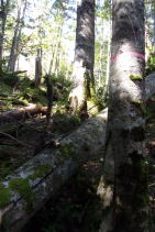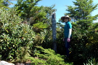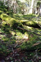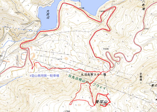 | 2024年10月02日のお山めぐりは群馬県片品村の螢塚山(けいづかさん)です。 白根山ロープウェイ登山者用第一駐車場から8時21分に出発、ゲレンデに向かいます。ゲレンデ内の舗装路は右上へ、S&Pも高みを目指します。進入禁止の板は車両向け、小さな駐車場の真ん中を突っ切り、右のテントの男女に御挨拶、その先で道は終了でゲレンデ内を適当に登って行きます。 舗装路を登る 四郎岳と燕巣山 リフト左下を登る ![]() ロープウェイ下をくぐり、次のリフトに沿って右上に登り、リフト終点手前で左側を選択します。左には懐かしの四郎岳と燕巣山が見えます。 リフトの高台を右上に見て登り切ると右に道型が入っていますが、先人のレポでは戻っていますので先の白っぽいコンクリート道を右上に登って行きます。背後には四郎岳と燕巣山が浮かんでいました。 背後の景色 四郎岳と燕巣山 ここで左上へ ![]() 道は緩んでゲレンデを横断し右上へ進んでいるので左上にゲレンデ直登です。傾斜が緩んで登り切ると白っぽいコンクリート道に突き当りました。どうやら右はさっきの右上の道と繋がっているようです。 さて、螢塚山は左です。コンクリート道は傾斜が緩んで砂利道になり右にカーブします。左上にゲレンデトップ、正面に白根山が目に入りました。直進して登山口で白根山が聳えています。右に案内柱が2本、螢塚山へのお誘いです。 左上にコンクリート道を 登山口で白根山 ![]() 入口はヒヨドリソウが繁茂、少しし進んで獣臭か、カネキャップ2発でリスタート、これをかき分けるとすぐに道型が現れました。よく見れば赤テープが木に巻かれていますが、苔むした伐採放置木の地点で右に引っ張られ、3分のアルバイト、GPSで確認して復帰します。 目を凝らしてみれば、繁茂したカニコウモリの終末期の群生の間の薄い踏み跡にコケの付いた伏木の登山道があります。 登山口の案内柱 苔むした倒木 伏木の道 ![]() 鞍部に登り切って踏み跡は右に進んでいます。尾根の右を巻き、その先で朽ちかけた伏木の階段道の急登、左側に麻のロープがあります。10時21分、三角点の待つ、狭い螢塚山の山頂でした。 赤テープのお誘い 最後の登り 山頂にて ![]() 東に白根山、北側に武尊山から四郎岳のパノラマをデジカメに収め、山名標柱・三角点を撮って撤収です。 朽ちかけた伏木の階段道の急降下には付設のロープがありがたく、遠慮なく利用させていただきました。S&P的には明瞭な登山道は左に下って、往路迷った地点に近くなるとやや不明瞭になりますが、周りを見れば樹木に赤テープが巻かれていました。(赤テープと登山道の名残りの横になった伏木の連続を見つければ迷わないでしょう。) 三角点 武尊山から四郎岳 ![]() 砂利道を戻り、右上のリフトトップで白根山を見ながらランチ休憩にしました。本日はしばらくぶりの晴天、風もさわやかな山上でした。往復するロープウェイ、ひょっとして白根山が正解だったか?片道ロープウェイで帰路は螢塚山経由で徒歩の下りもありだったか。 10時39分に撤収、往路を下り、ゲレンデ最上部の案内板を見て、コンクリート道を辿ることにしました。道は砂利になる区間がありますが最後はコンクリート道になり往路のゲレンデ取り付き点を通過します。案内板に従って国道を歩いて下ることにしました。かなりの大回りですが、駐車場には13時03分の到着でした。 駐車場(0:49)ゲレンデ上部のコンクリート道合流点(0:47)登山口(0:18)螢塚山(0:10)登山口(0:04)リフトトップ(0:35)ゲレンデ上部のコンクリート道合流点(0:04)国道(1:07)駐車場 所要時間は4時間42分(歩行3時間47分)、展望のピークハントでした。 |