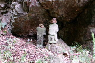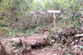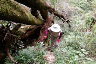 | 2024年10月27日のお山めぐりは今年お初の鞍掛山です。 鞍掛山の登り口手前のY字路にある駐車スペースは残り2台、朝のお掃除洗濯の後の9時35分到着で滑り込みセーフでした。9時38分に出発、北上してすぐ右上へ進み、鳥居をくぐって参道へ入ります。去年は参道左側の踏み跡をでしたが、今日はより明瞭な右側に付いた杉の根張りが目立つ道型を登ります。 林道から右上へ 双体神 ![]() 双体神の石像を見てから枯れ沢右岸に付いた登山道を選択したのは内緒の目的があるからです。奥社への道を右に見て直進、丁字路分岐は右上に進みます。傾斜が緩んで男性1名とスライド、サラシナショウマの白が目立ちます。前回なかったと思う大きな倒木脇を登って尾根に出て左上ですが、汗が出てきたのでひと息入れます。 分岐は右へ 倒木脇を登る ![]() 左上に進んで大岩展望台でザックを下ろしてエネルギー補給のノンビリ小休憩にしました。右端に相変わらずの古賀志山、微風ですが曇空で遠くの景色は×でした。 大岩から ![]() 撤収して大岩から下り山頂に向かいます。登り返してすぐに天敵の羽音、通りバチですぐに視界から消えました。鞍掛山の山頂には11時08分の到着、三角点に触ってから西進です。分岐は右の古賀志山方面ですぐに岩混じりの登山道の下りになります。次の小ピークに登り返して右下へ下り、小さなコブを越えます。 鞍部から登り返しですが、岩々の登りになって大きなスズメバチが一匹向かってきました。腰のスズメバチサラバを出してプシュー1回とはいかず、3回ほどでハチに当たり、退散してくれました。 大きな岩は左から右上へ登って背後に冒頭画像の鞍掛山が目に入ります。(ここは新緑の頃が美しい。)傾斜が緩んでアカヤシオの頃がよい地点を通過、鞍槍の山頂には11時36分の到着、ザックを下ろして軽食をねじ込んで50分に出発します。 高原山は雲の中 シゲト山の名板 ![]() 猪倉峠に下ってみれば尾根の右半分が伐採されて展望地になっていました。少々登り返して盗人岩のピークをデジカメに収めます。女性ハイカーが古賀志山方面から下ってきて少しばかりお話し、今日の餃子トレランを知らなかったようですが、手岡峠はかなりの混雑だったそうです。 中央に盗人岩のピーク(盗人岩の岩窟は左下にあります。) ![]() おあとは峠に戻って南に道型を下るだけです。道端には点々とトウヤクリンドウ、一輪だけツルリンドウが咲いていました。駐車場所には12時43分の到着でした。 駐車場(0:15)双体神(0:08)分岐(0:34)大岩(0:10)鞍掛山(0:28)鞍槍{シゲト山}(0:24)猪倉峠(0:22)駐車場 所要時間は3時間05分(歩行2時間21分)、展望のランチハイクでした。 |