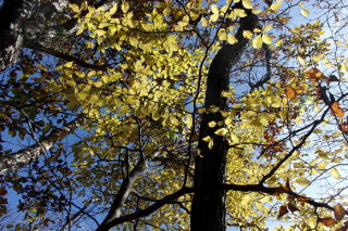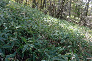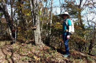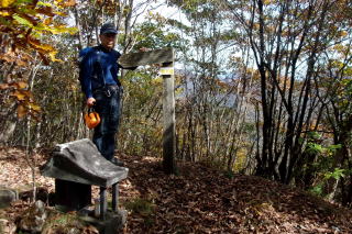 | 2024年10月31日のお山めぐりは群馬県高崎市の李が嶽(すももがたけ)です。 榛名湖西岸にある湖畔の宿記念公園駐車場から9時16分に出発、杖の神峠を目指します。駐車場上部からは榛名富士、道路沿いの紅葉を眺めながら南進し杖の神峠林道の起点を示す板を見て右上に進み、大きくジグザグ登りになり北上しますが、どうやら紅葉のいい時期に当たったようです。 駐車場と榛名富士 杖の神峠林道入口 ![]() 林道は帰路に下る右下からの道との合流点を過ぎて未舗装になり、西に方向を変えると下りになります。再び舗装路になり、未舗装になると水が被った道路の右端を歩きます。このあと林道jは舗装・未舗装を繰り返します。 西峰付近から南に下る支尾根を迂回し北上する地点から正面に青空に浮かぶ西峰と思しきピーク、左に冒頭画像のとおり、木越しに今日の目的地の李が嶽・鷲ノ巣山が見え、右上のコンクリート壁上部の黄葉・紅葉が目に入りました。このあと林道はすぐに西に方向を変えます。 西進していた林道が南進して舗装になり、北上すると右に榛名の山々、背後に鷲ノ巣山が目に入りました。路肩には黄色のアワコガネギクが咲いていました。道なりに左折すると杖の神峠で駐車余地がありますが、一台も止まっていませんでした。 右に榛名の山々 背後の左奥に鷲ノ巣山 ![]() 左側に案内標を見て伏木の階段道を登り終えると笹原の斜面で笹が被っていますが、よく見れば笹に隠れた踏み跡があります。右の赤がまぶしい紅葉を見て傾斜が緩むと道型が明瞭になり、よく見れば赤テープ、傾斜が緩んで青テープが出てきました。 杖の神峠 笹に埋もれた登山道 ![]() 最初のピークというより肩かな?、下りになって足元にコアジサイの黄色、左上にアオハダかまぶしい黄色が目に入ります。細尾根になって登り返しは急登でピークに到着ですが名板はありません。頭上に紅葉を見ながら下り、登り返した次のピークが鷲ノ巣山でした。 急登 コアジサイの黄色 鷲ノ巣山にて ![]() 2分で撤収、右下の下りますがここからが本番でした。赤テープに誘われて細尾根の下り、正面の木越しに李が嶽の三角峰が浮かんでおり、今日一のお縄場を通過します。細尾根に露岩、稜線の赤と黄色、緩いアップダウンから登り返しが始まると頭上に最盛期の紅葉が待っていました。 李が嶽へ向かって 頭上に紅葉 ![]() 笹尾根の登りからピークに出ますが名板等はなし、少々下ってから登り返したピークには石祠が一基ですが、ここにも名板等はありませんでした。緩い下りから木越しに正面にピークが見えます。緩い登り返しで到着の山頂には石祠4基と三角点が待っていました。 黄色はアオハダか? 李が嶽にて ![]() 展望なしの山頂でエネルギー補給で18分の停滞ですが、女性1名と入れ替わりに撤収で往路を戻ります。石祠のピークの先で追いついてきた件の女性に道を譲り、紅葉を眺めている間に女性の姿がすぐに見えなくなりました。 おあとは紅葉を見返しながらのんびり旅です。見覚えの笹原から峠に降りて右に林道を下りますが、左上の掃部ヶ岳からの下りと思われる複数の人声がします。林道の終点近くになって分岐で左に下りますが、たぶん別荘内の道路と思われます。駐車場所には13時48分の到着でした。 駐車場(0:07)杖の神峠林道起点(0:55)杖の神峠(0:28)鷲ノ巣山(0:50)李が嶽(0:41)鷲ノ巣山(0:16)杖の神峠(0:38)分岐(0:09)駐車場 所要時間は4時間32分(歩行4時間04分)、紅葉の山旅でした。 |