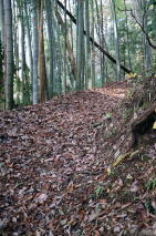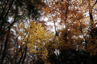 | 2024年12月04日のお山めぐりは那珂川町矢又の地形図無名峰の翁山です。 国道293号線沿いの矢又から大内へ向かう舗装路に入り、両脇の民家の間を北東進、右側の民家の先に右に入る道型が取り付きですが、その先左側の路肩が広くなっており、数台駐車のスペースがあります。11時22分に出発、南西進して左に冒頭画像をデジカメに収めます。舗装路から左に入り、奥の鳥居をくぐります。 左へ入る 奥の鳥居をくぐる ![]() 鳥居には翁山皇大神宮とあります。ジグザグに登る参道の最初は孟宗竹の斜面にコアジサイの黄葉、次いで植林帯の登りになります。11時33分、土俵でしょうか境内に円形の窪み、左に社務所の建物、一段高い奥に2棟の建物があります。 参考ページでは左が八龍神社、右が皇大神宮とのことでした。建物の右側から踏み跡を登って行くとすぐに屋根だけの残骸があり、踏み跡はここまででした。 竹林の登り 植林の登り 奥にお社二棟 ![]() 奥のピークで証拠データをデジカメに収め、さらに奥に入ってみました。少し下った鞍部から登り返しは杉の植林急斜面の直登、左右が雑木帯になると傾斜が緩んで黄色の葉が目立ちます。登り切った地点が286m評点ピークかとデータをデジカメに落としますが、右に進んだ高みでした。 翁山最高点 尾根の黄葉・紅葉 ![]() 小さなコブをいくつか越えて300m級のコブが連続する地点を通過、時間切れで2つ目のコブで北に下ることにしました。一回だけ登り返して雑木の小ピークを通過し、緩やかな植林尾根の下りから左下の無名神社のお社へ、そのまま参道らしき踏み跡を左下に下って行きます。 途中はタカノツメの黄葉のトンネルの中を下り、右に方向を変えて幹線道路に飛び出しました。おあとは8分程歩いて駐車場所に無事到着でした。 所要時間は1時間22分(歩行1時間17分)、神社訪問主体の小さなピークハントでした。 参考 国土地理院電子地形図「馬頭」 「Kyonsight」様の「八龍神社」 |