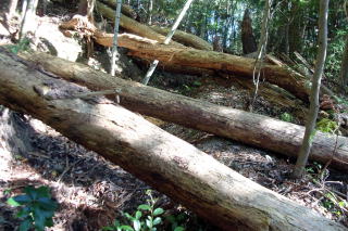① 愛宕山(365.1m) 編 2024年12月15日のお山めぐりは福島県いわき市の愛宕山です。 いわき市田人公民館北側の駐車場から9時49分に出発、公民館にお断りをと行ってみましたが施錠されていました。南下して妻橋集落へ登り返すと右にヤマレコさんでいう気になるピーク(無線中継塔の立つ地形図無名峰「黒岩山」)が目に入ります。 駐車場はがら空き 南下して左の妻橋集落へ ![]() 民家の男性に御挨拶し、その先の案内標柱の分岐から左に入って行きます。未舗装の少々下りになって、Y字路は左上に誘われますが行き止まり、5分のアルバイトで本線復帰します。樹林帯になって左に建物と紅葉、別荘でしょうか? 妻橋登山口 紅葉・黄葉 ![]() 通り過ぎて杉の植林地の緩やか登りから伐採地手前を右へ進み、ここでも左上に誘われますがすぎに薮で行き止まり、本線復帰し足元を見れば色褪せたテープが落ちていました。 右上に進む薮化した登山道の右の杉の根元付近を登って行くと太い倒木が連続しています。倒木地帯を通過すると不鮮明になった道型が左上に方向を変えます。植林地尾根の緩い登り、アオキの下生えが繁茂する地点から松混じりの雑木帯を通過します。左上にはモミジの紅葉が目に入りました。 倒木帯を通過 残り紅葉 ![]() 小さなピークは尾根の右側を巻き、それほど太くない倒木が点々と現れます。左杉檜、右アオキ等の雑木の尾根に付いた登山道は小さなピークの左を巻きます。尾根に復帰した鞍部から正面の杉の斜面の左側に進み道型を選択、登山道に被さる雑木、登山道の伸びた下草を分けて登ります。 正面に愛宕山らしき杉林のピークを見て、左に向かいます。(登山道脇の「愛宕山⇀」の標柱の「⇀」を見落として直登ルートを外してしまったようです。)植林帯から雑木帯になってすぐに右に標柱の立つ分岐に出ました。直進は帰路に向かう中野登山口方面で標柱に従って右上の愛宕山に向かいます。 登山道の一部 分岐で右上へ ![]() 植林尾根の左側を登り、左に方向を変えて左の雑木尾根に乗り換えて右上に方向を変えます。登る途中で人声がします。石祠一基を見て奥に進むと三角点付近に10数名の男女が休んでいました。奥から男女と入れ替わりに展望地のベンチでランチ休憩にしました。(ラッキー!!) 南東側のせいか、風は当たらずに済みました。三角点付近の集団が退去し静かになった山頂で踏まれてなさそうな直登ルートを確認、山頂の証拠データをデジカメに落とし、S&Pも撤収することにしました。 山頂からの展望 ![]() 分岐まで戻り、右の中野登山口に向かいます。こちらは植林帯の下りで展望は皆無、よく踏まれていました。中野登山口の駐車場では先ほどの団体さんと思しき3台の車が出るところでした。 幹線道路に出て左折、舗装路をのんびり下りです。駐車場所には13時21分の到着でした。 駐車場(0:35)妻橋登山口(1:20)分岐(0:07)愛宕山(0:04)分岐(0:25)中野登山口(0:14)駐車場 所要時間は3時間32分(歩行2時間45分)、残り紅葉と山頂下展望のピークハントでした。 参考 国土地理院電子地形図「上平石」 |