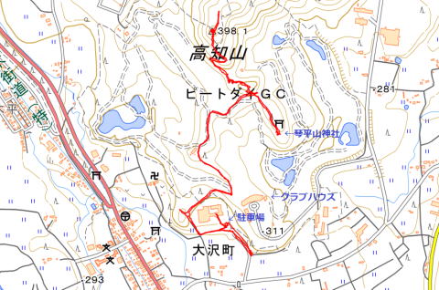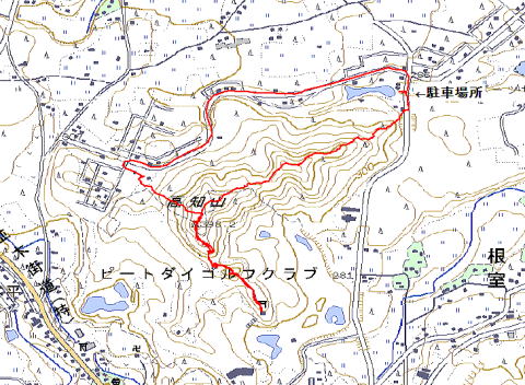 2012年03月19日のお山めぐりは高知山です。 前回は12年前、北から杉植林地尾根を直登し東西尾根に乗って西進して高知山でした。今回は尾根東端に東から進む住宅地図の実線路を辿ることにしました。 |