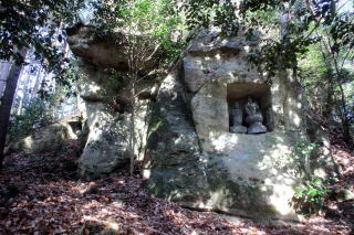 ② 再々訪の高知山・観音山 編 埼玉県の予定がポカッと空いた快晴に近い25日の朝、クリスマスなどほとほと縁のないS&Pは昔のレポを思い出しました。ネットを手繰ればゴルフ場内を横断するレポもあるあのお山です。 2024年12月25日のお山めぐりは前回レポで把握の観音山・再々訪の高知山です。 参考ページ・ヤマップさんのレポから南にある公民館駐車場より10時06分に出発、公民館南側を西進、敷地外縁で右の未舗装へ入って行きます。丁字路分岐でレポにあった案内板に従って直進をパス、右に進みます。道は手入れ良く刈り払いされていました。右上の樹林帯に入り、登り切るとゴルフ場のクラブハウスが見え、舗装路に出ます。 右の公民館窓口で御挨拶して出発 分岐は右へ ![]() 作業中の男性2名に御挨拶して左へ、すぐに道は左右に分かれますが、案内板が右上に誘います。公民館敷地の北側を通過し右上に登り切ってゴルフコースの中へ、右にクラブハウスが見えます。 左に進んでY字路分岐に「高知山⇀」があります。コース奥に男体山方面が目に入りました。右にはグリーンの先に高へら山が浮かんでいます。 左奥に日光男体山方面 高へら山方面 ![]() 樹林帯を通過し、再びコースを横断します。ティーショット待ちの男女が乗っているカート脇を通過し再び樹林帯を通過します。三度目のコース横断ですが、左はグリーンでY字路は今度は左上です。少し登って左のコースに日光男体山から女峰山、右のコースに池の鳥屋から班根石山が目に入りました。 樹林帯へ入って2分で左に「←高知山」の案内板、右の広場は駐車場と表示の場所、右奥に進んで琴平神社を往復します。ここの狛犬さんは2度目ですが品のいい古いものです。展望台からの展望はなくなっていました。 日光男体山から女峰山 琴平神社からの展望はなし ![]() 再び広場に戻り、道を横断して高知山に向かいます。羽黒神社を過ぎていったん下った鞍部で右に四回目のコースとニアミス、登り返して雷電神社、そして 11時11分に3度目の高知山の山頂でした。現在は展望なし、時間はちょっと早いのですがベンチでランチにしました。 名板とテープ 山頂にて ![]() 高知山からの下りは尾根伝いに北へ、途中で左に下るところを見逃して行きすぎました。「高知山山頂」の板の場所で踏み跡を左に下り、「もうひと息」の板、途中で右に引き込まれて若干アルバイト、戻って左に下り緑色のフェンスを見てその下側を左にトラバースでハイキング道に無事着地でした。 舗装路に出て左へ、丁字路は右へ、次の十字路は左上へ登り最高点を通過して下ります。次の丁字路は右へ進んで再び丁字路ですが直進から左に進んで道型は消失、雑木林に入ると左右に薄い道型があります。左に進んで一段深い道型を右下ですが、薮が覆っています。直進で再び道型消失で右に下って行きます。(最初の十字路を直進で幹線道路に出た方がよかったようです。) 樹林帯が終わって細い堀を飛び越えて田んぼの畔道へ乗り換えて幹線道路に飛び出しました。左へ進んで日光街道へ出て信号を左に南下、次の信号手前で左の舗装路に入り、龍蔵寺境内を抜けて公民館前を通過します。 定休日の蕎麦屋さん前を通過し道幅が広くなった地点で左を見ると伏木の階段道があります。杉の植林地内を登り始めてすぐに左に馬頭観音の石仏の集団、右上奥に石像一体で見えます。急登の落ち葉に隠れた参道は足元を探りつつ登ります。左に石仏3体は如意輪観音・?・地蔵菩薩でしょうか。 左側に参道入口あり 左に馬力神・馬頭観音 ![]() 登り切って正面の大きな岩の上部に四角のくりぬき穴、石仏2体、よく見れば左右に2体ずつあるようです。左上に進んで岩穴に倒れた石仏、さらに左奥上部の岩穴に一体、左の斜面に大仏様らしき一体があります。 左上に植林斜面を登り、途中に右上に方向を変えて大岩の上部に出ます。ここからは緩んだ斜面を直登で観音山のピークに出ました。山頂は細尾根で展望なし、そそくさと撤収でした。 大岩の壁の石仏 背後の山頂にて ![]() おあとは往路を戻るだけです。駐車場には12時58分の到着でした。 所要時間は2時間52分(歩行2時間25分)、GPS忘れ&道迷い&薮歩きの参考にならない周遊ピークハントでした。 15年以上前にゴルフコースは100回以上回っていました。ゴルフ以外でコース内に入るのは初めてでした。日光連山や宇都宮北部の山並み、このハイキングコースは「困ったときのお山」に入れましょう。でも高知山から北は手入れがありませんのでピストンが正解かも・・・。 |