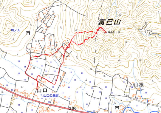寅巳山(445.8m)![]() 山口公民館方向から寅巳山 もう数回行っているのですが、今年の干支のお山ですので・・・。 |