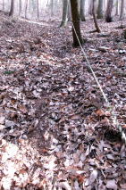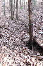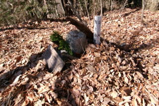| 2025年01月02日のお山めぐりは日光市の寅巳山です。 前回寅年の2022年に続いて、6台駐車の山口公民館の駐車場から10時26分に出発、野鹿台団地に向かいます。日光方面は男体山にも少し雲がかかっていますが、風はありません。団地入口の案内板を確認、右に進んで途中で左上へ、丁字路は右へそして左上で登山口でした。 日光連山は雲が 団地入口の案内板 ![]() 登山口で背後を見れば鹿沼の羽賀場山からお天気山と思しきギザギザの尾根、右に鶏鳴山が目に入りました。登山道に入ってロープ場手前で3人の女性・単独男性、ロープ場で男女、単独男性、2人の男性とスライド、2つ目のロープが終了し上部を見れば女性2名が待っていました。女性2名と入れ替わりに支尾根を左上へ進みます。 登山口から背後の山並み ロープ1本目 2本目 ![]() 中世城郭の一部である削平地を通過し、東西尾根へ登って右が山頂です。明瞭な堀切を通過して三角点の待つ寅巳山には11時11分の到着でした。 堀切通過 山頂の三角点と名板 ![]() 帰路は①北東に尾根を下り、途中の430mコブからから右下へ、②北東に尾根を下り、400m付近の鞍部から右下実線路へ、③南東へ尾根を下る、④北西へ尾根を下る、⑤往路を戻り鞍部を直進し途中から南西に尾根を下る、⑥往路をピストンで戻るかですが、多少冒険もということで⑤を選択です。 南西尾根末端から檜の境木をジグザグに踏み跡が下っており、一か所だけ少し長めに右へそして左へ下り境木の列に復帰します。赤テープ2か所、次いで青テープが出てきて右側に2か所連続したところで踏み跡が右に下っています。一か所青テープを見てその先は踏み跡が消失、高度を変えずに直進で往路の登山道に飛び出しました。 ジグザグ下り 青テープ↓ 同↓ ![]() おあとは左下の登山口を通過、往路を下りますが、途中から右の所を直で舗装路を下ります。団地を通過し左右に舗装路をみて田んぼの畔道を直進、次の丁字路は右へ、民家の間を抜けて右上の工事中の道路へ乗り換えます。道なりに左に曲がって往路に合流し左折、道なりに右に曲がって駐車場には12時01分の到着でした。 駐車場(0:06)団地入口(0:08)登山口(0:31)山頂(0:31)登山口(0:15)駐車場 所要時間は1時間35分(歩行1時間31分)、干支のお山のちょい山歩でした。 |