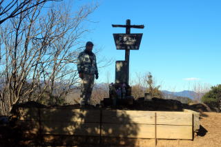 | 2025年02月04日のお山めぐりは埼玉県飯能市の天覧山・多峯主山、余裕があれば柏木山です。 昨年の龍崖山ほかに引き続いて中央公園の先客2台の駐車場から8時35分に出発、北側の幹線道路を渡って飯能ベーカリーさん入口右の案内板に従って舗装路を北上です。舗装路終点の広場で現在地確認、右下への道は見送り、奥の山道に入って行きます。 登山口と案内板 広場かな ![]() S&Pの好みではないコンクリート杭を横に並べた階段道ですが段差は小さいので比較的歩きやすい。丁字路は左上へ登って行くと、8時55分に展望台のある天覧山の山頂で、飯能市街から右端は大岳山方面までパノラマが広がっていました。目を凝らすと白い富士山も顔を出しており、デジカメに収めて撤収、多峯主山へ向かいます。 北に下って南西に方向変換、湿地の遊歩道に出てキックバック気味に北上、今が時期ではありませんが「マムシ注意」の板があります。 天覚山にて 雲一つない富士山 ![]() 分岐で案内板に従って左上へ、伏木の階段道を登って行きます。尾根筋の道は太く、左、そして右から登山道を合わせ、その先で直進をパスして右上に山頂を目指します。 途中から左の石段の道と右の鎖の下がった道に分かれますが、右を選択します。先客2名のいる山頂には9時41分の到着でした。こちらも左(南)の展望がよく、右下には筑波方面、三角点の奥には武甲山ほかのパノラマが広がっていました。富士山は山頂から左に雲がかかってきていました。 山頂にて 富士山と大岳山 ![]() 北の展望 ![]() 帰路は永田台経由か、御嶽八幡神社経由か鳩首会談、後者に決定です。山頂を下ってほんの少し登り返しから御嶽八幡神社のお社ですが、狛犬さんは御不在でしたが、相変わらず展望が目に入りました。さほど時間が経ってないのに富士山は左半分が雲に隠れていました。 おあとはジグザグ下りの連続でした。鳥居をくぐって道は平らになり、右にロウバイが一本黄色い花を付けています。子どもたちの声が耳に入ってきました。登山口表示のある舗装路を右へ進んで幹線道路に出ます。西進してすぐに左に進んで見ますが案内板なし、一本手前を入ったか?気を取り直して先に進んで道なりに右へ、やっと本道に出たようです。 御嶽八幡神社へ 富士山は風強そう ![]() 不動堂前を通過し、ドレミファ橋を渡り、登り返して舗装路に出て西進、幹線道路に出て右へ進みます。丁字路は左上で右側に9台満車の駐車場、その手前を右上に登って 茜台と呼ばれる広場でした。 登山道は奥に沢沿いに進んでいますが、右上に新しく手入れされたような登山道らしき踏み跡が上がっており、尾根に出ると往路の多峯主山から天覧山が一望でした。 茜台広場入口の駐車場 展望所から多峯主山 ![]() 尾根に付いた道型は広く明瞭、西進してベンチと竹筒の覗き眼鏡?のある展望所へ、南西進して3っ目の展望所でエネルギー補給して南西進です。右側に金網柵が現れ、いったん下ってから登り返しで女性ハイカーとスライド、その先で左下からの道が合流する分岐点を通過します。 2つ目の展望所の覗き眼鏡?かな 3つ目の展望所から柏木山か ![]() 次の分岐も右へ金網柵の左側を進み、富士見の丘を通過します。残念ながら天候急変で富士山は雲の奥でした。山頂がチラ見えしてから7分で賑やかな声がいっぱいの柏木山の山頂到着でした。残念ながら富士山は見えず、背後の山々も雲がかかっていましたので雪かもしれません。 柏木山へ 丹沢方面 ![]() 今日は16時までに帰らなければならず、そさくさと撤収で往路を戻ります。3つ目の分岐で沢沿いのルートを下り、茜台広場を通過します。おあとは舗装路歩きで八耳堂前を通過、駐車場所には12時54分の到着でした。 中央公園P(0:17)天覧山(0:40)多峯主山(0:13)御嶽八幡神社(0:45)茜台広場(0:45)柏木山(0:25)茜台広場(0:35)中央公園 所要時間は4時間19分(歩行3時間40分)、展望の周遊ピークハントでした。 富士山も見られたし、3箇所以外にも展望地があったし、満足のピークハントでした。 |
