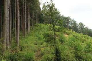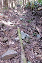 ② 膳棚駐車場から坊主山(395m) 2025年07月03日のお山めぐりは古賀志山塊の一峰「坊主山」です。 先月見たヒメヒオウギズイセンはどうだろうか。ついでにあのお花は大丈夫だったろうか確認しに歩いてみることにしました。 膳棚駐車場を重役出勤の9時30分に出発、駐車場からすぐに左の舗装路に入って行きます。次の丁字路は右へ、満開に近いタケニグサ、コウゾの赤い実が目立ちます。終点近くになって路肩に開花しはじめたヒメヒオウギズイセンの集団が目に入ってきました。 駐車場から出発 ヒオウギズイセン ![]() 今日は舗装路終点から正規ルートの予定でしたが、気が変わって終点手前にある作業路を登ってみることにしました。左へ、右へ高度を上げて右へ水平移動に変わるころに左上の踏み跡を直登ですが、踏み跡は消失します。かまわず下草の薄いところを登ってみれば左から右へ作業路が現れました。 左上へ 直登 現れた道型を右へ ![]() 右へ進んで記憶に残る稜線への踏み跡に出会い、左上に1分もかからず西側伐採地の稜線に飛び出しました。伐採地の直下の作業路で造林関係の若い男性2名からお声がかかりました。正面に二股山方面、右に古賀志山をデジカメに収めます。下の男性に声をかけて撤収、右に下って行きます。 薮があるので左上はパス 古賀志山 ![]() 尾根に付いた踏み跡は明瞭、いったん樹林帯に入り、右に方向を変えると左(北)側が伐採地で、再び古賀志山が目に入ります。小藪を分けて右下からの正規ルートに合流し、坊主山・古賀志山は左上です。 足元に盛期のオオバノトンボソウが点々と現れます。直登の伏木の階段道からジグザグ登りが終了すると傾斜が緩んで左の駐車場方面への道型を見送って直進、すぐに右上の尾根に出て右の坊主山のピークを踏みます。 オオバノトンボソウ 坊主山名板 ![]() 帰路は北上して舗装路に出て右へ、咲き始めたノリウツギなどを眺めながら緩い下りになります。今年何度目になるか、333m評点のある仮称「変形五差路」で少考、右の舗装路はパスして直進2本の右側を選択します。こちらは340m級ピークの西側のバイパスルートです。同ピーク南下でピークルートと合流します。 緩やかな下り、尾根の左側が間伐で尾根に付いた登山道も明るくなっています。298m評点付近が丁字路で右の膳棚駐車場への道に入ります。直進の正規ルートは最後の伏木の階段道で膝に効いてくるので、途中から左の作業路へ入りますが、これが不正解でした。作業路の70%は夏草の薮でした。 作業路は夏草ヤブ 薄くなったり濃くなったり(´;ω;`) ![]() ゴルフ場の道路が左下の沢向こうに見えるのに一向に左に向かいません。薮また薮を踏み倒して(´;ω;`)、最後に正規のルートに合流でした。舗装路に飛び出して右へ戻り、駐車場所には11時50分の到着でした。直進の正規のルートでしたねえ。 所要時間は2時間20分、休憩ほとんどなしの周遊・夏のお花探索のピークハントでした。 とある場所のコクラン 同2 ![]() 参考 国土地理院電子地形図「大谷」 |