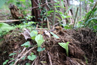 | ③ 林道コースから長倉山(370m) 2025年07月20日のお山めぐりは古賀志山塊の一峰「長倉山」です。 そろそろイワタバコ・レンゲショウマが開花する時期、今日はその様子見に歩いてみることにしました。 いつもの赤川ダム下駐車場はけっこう埋まっている日曜日、沢沿いに林道コースから長倉山です。 長倉林道入口 長倉山の山頂 ![]() 細野峠に下って赤川上部沿いにイワタバコ生育地を2箇所ばかり覗いてみました。小規模な一か所目は生育不良で花芽も少な目でした。けっこう大面積の2箇所目は標高が高いにも関わらず4輪ほど開花していました。 ヤマユリと540m峰 2箇所目のイワタバコ ![]() おあとは赤川右岸の舗装路を下り、細野ダム右岸から同ダム脇を通過、北登山道に出て左折、しばやま橋を渡ってBBQ場脇を通過し駐車場には12時18分の到着でした。 所要時間は2時間34分、お花探索のピークハントでした。 参考 国土地理院電子地形図「大谷」 お花はイワタバコのほか、咲き始めから満開のニガクサ、ヒヨドリバナ、ヤマユリ、ノギラン、オオバギボウシ、ヤマミツバ、アカツメクサ、イヌザンショウ、終末期のムラサキニガナ、クサアジサイ、キツリフネ、ヤブカンゾウを見ました。 過去レポ2024年はこちらを☚ 2023年はこちらを☚ クリックしてください。 |