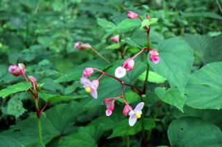 | ④ 林道コースから長倉山(370m) 2025年08月11日のお山めぐりは前回同様に古賀志山塊の一峰「長倉山」です。 お盆期間まで天候は雨模様で足がピクピクしているPさん、午後になって雨が上がり近間のお山を物色、下記の③のルートで再度お花探索です。およそ20台程度の月曜日の赤川ダム駐車場、午後1時43分に出発です。長倉林道沿いは咲き始めたニガクサ、ヘクソカズラ、盛期を過ぎたノギラン、ヤマユリは終了でした。 林道終点から長倉山へ、途中で2本のミヤマウズラを見ました。今年2度目の長倉山から細野峠に下り、舗装路を左下へ進み、分岐で右へ舗装林道を北上です。橋を渡って初めて2人の男女と相次いでスライド、左奥のシュウカイドウをデジカメに収めます。 ミヤマウズラ シュウカイドウ ![]() 石祠の分岐、二枚岩登山口、次いで沢コースへの分岐を通過しますが、濡れた路面が滑りやすくツルツルのノーマルタイヤのような管理人の靴では心もとなし、本日これまでお散歩終了でした。 帰路は前回同様赤川右岸の舗装路を下り、途中で左へ橋を渡り東屋前を通過、右折して駐車場に戻りました。路肩にはフジカンゾウが咲き始めていました。 所要時間は2時間06分、お花探索の低山散歩でした。 イワタバコは終了間近、レンゲショウマは2箇所で1輪から2輪、キツネノカミソリは咲き始めていましたが間伐・その他で環境激変か株が少なくなったようだ。 レンゲショウマ キツネノカミソリ ![]() |