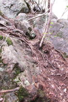 ③ 07.09 編 ここのところ天気が安定しません。遠出のお山はいずれも午後から雨の予報です。 2025年07月09日のお山めぐりは今年3度目、困ったときの古賀志山です。 今日は真夏の陽気の水曜日、駐車場はガラガラです。8時53分に赤川ダム下駐車場最奥から出発、先行3名の男女の後を追います。BBQ場脇で男女の先に出て次の分岐で少考、しばやま橋を渡って右にオーソドックスルートを辿ることにしました。 カリガネソウはまだまだ先、フジウツギの花穂が2本を見て、砂利道は左に曲がり、沢沿いの樹林帯に入って行きます。鉄管がむき出しになったあたりからは涼風で27~8度の体感か、十人近くが屯する水場を通過します。夏はやはり沢沿いでしょうということで沢の左岸の踏み跡から無人の広場に出て5分ほど休憩です。 ここで少考、沢沿いのヌタバコースではなく富士見峠に出ることにしました。ここからの登りは暑く、汗が吹き出しますが、きょうは珍しいことに又も別の男女の先になります。富士見峠から古賀志山への登りでは相次いで男女とスライド、東陵と古賀志山の鞍部の十字路から右上の古賀志山には10時16分の到着でした。 帰路は南登山道(階段コース)を下り、古賀志山林道の坊主山入口で出て左へ、傍らのムラサキニガナをデジカメに収めます。のんびり舗装路を下り、4月24日の軌跡のとおり、333m標高点の仮称「変形五差路」で正面2本の踏み跡の右を選択します。本日違うところは最後の丁字路分岐で左へ下り、展望台経由としました。 ムラサキニガナ ここで左へ ![]() 展望が少なくなった展望台から段差の大きな遊歩道を下り、左に進んでダム湖周回舗装路に出て右へ、赤川ダム湖越しに古賀志山をデジカメに収めて駐車場所には12時35分の到着でした。 所要時間は3時間42分、かなりの時間お花探索をしましたので歩行時間は省略してあります。 今日はお目当てのお花は見つかりませんでした。帰ってからネットで確認、8月の開花でしたがたぶんアソコでしょう。先週に引き続いてコクランをデジカメに収めました。もう蕾はありませんので今週で終了でしょうか?小さいお花でピントがなかなか合わず、次いで手振れか撮り直しで時間がかかりました。 ほかにクサアジサイ、タカトウダイ、ノリウツギ、ホタルブクロ、ママコナを見ました。真夏の暑い時期に来たくはないのですが、お目当てのお花に会いにいずれまた。 ママコナ コクラン ![]() |