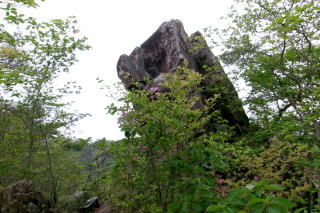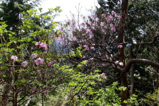 ① 04.24 編 2025年04月24日のお山めぐりは今年お初の古賀志山です。 半分も埋まっていない赤川ダム下駐車場から9時15分に出発します。ダム湖左岸の舗装路を直進、BBQ場を過ぎてY字路分岐は右を選択、間伐により明るくなった舗装林道を登って行きます。左に細野ダム湖を見て次の丁字路の東屋を左に見て直進、後続の4名の男女は左に入って行ったようでした。 次のY字路は右の細野峠への道を見送って左へ、橋を渡ってすぐのY字路分岐は左上へのコンクリート道に入り、赤テープがすぐに右上の踏み跡に誘っており、ここは二枚岩方面へのマイナールートです。尾根に出て大きな岩は左から巻いて岩の上に出ます。 尾根上はヤマツツジとミツバツツジ、次の岩場でヒカゲツツジの残り花をデジカメに収めます。左の岩棚で新緑の中尾根2つのピークを見て、その上の小ピークは以前マムシが2匹を見た所ですが雑木が伸びて展望は控えめになってきています。 岩場の登り 展望岩棚 雨乞山は中央右 ![]() 鞍部に下ってから登り返した岩の小ピーク先の丁字路分岐で右の二枚岩は今日の目的のヒメイワカガミが少しだけ咲いていました。アカヤシオやヒカゲツツジが散った今は女性ハイカー1名が登ってきただけの寂しいものです。分岐に戻って右へ、ミツバツツジの中を進みます。植林帯に入って尾根の右斜面にヒメイワカガミがあり、左斜面で木の芽採りの先ほどの女性ハイカーの先に出ます。 二枚岩 ヒメイワカガミ ![]() 中尾根の五差路の鞍部に出て、中尾根を右に登った小ピーク直下の展望所でランチ休憩です。冒頭画像(新緑の先の古賀志山)をデジカメに収めているとさっきの女性ハイカーが後を通過しました。 奥手のアカヤシオ、盛期のミツバツツジ、ヤマツツジ咲く中尾根、西端で北尾根ルートに合流して左へ、無人の富士見峠から今年お初の古賀志山には件の女性ハイカーほか2グループ数名が大休憩中でした。 アカヤシオの残り花 今日の古賀志山頂 ![]() おあとは右に下りますが、賑やかな声が聞こえてきました。3人の男女が引率の全員5歳という子どもたちとスライドです。鞍部の丁字路分岐は左へ下りです。植林地帯でミツバツツジとはお別れです。伏木の階段道の中間地点でもう下ってきたのか、左上から子どもたちの声が聞こえてきました。 岩下道に出て視界が開け、南尾根の登山道と合流地点で男女3名の先に出て坊主山入口から舗装林道を左へ下ります。舗装の丁字路(踏み跡2つを加えれば五差路・S&Pは「変形五差路」としています。)の先の右の踏み跡を選択し緩い登りから左の遊歩道に合流します。 あらあら左の植林斜面は間伐作業が入っており、とあるラン科の生育地の廃作業道はブルで掘り起こされていました。Σ(・□・;)膳棚駐車場分岐は直進、次の分岐も直進、遊歩道が左下に方向を変える地点で直進する踏み跡を探検することにしました。 ここで直進 舗装路へ出て左上へ ![]() 緩いジグザグ下りから直進で下り、舗装路に出て左上へ、旧サイクリングターミナル下のダム湖岸の舗装路に出て右です。左の湖面先に古賀志山をデジカメに収めます。駐車場には14時05分の到着でした。 駐車場(1:18)二枚岩(0:29)中尾根展望所(0:38)富士見峠(0:15)古賀志山(0:25)坊主山入口(0:10)変形五差路(0:40)駐車場 所要時間は4時間50分(歩行3時間55分)、展望・お花探索の周遊ピークハントでした。 上記のツツジ類のほか、タチツボスミレ・マルバスミレ・クサボケ・ウラシマソウ・ツクバキンモンソウ・咲き始めのチゴユリ・ムラサキケマン・アオダモ、そして古賀志山塊でお初のイチリンソウの集団を見ることができました。 |