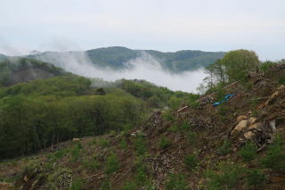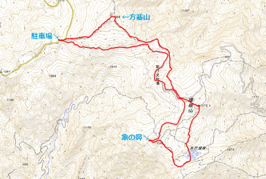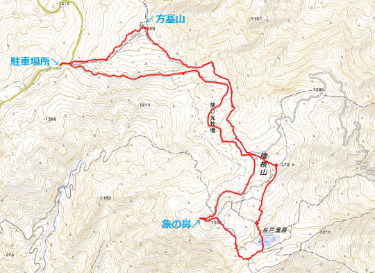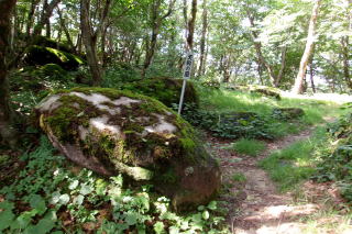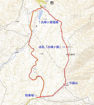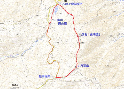 ③ 方塞山から三枚岩・点名「古峰ヶ原」 編 2025年07月24日のお山めぐりは方塞山から点名「古峰ヶ原」です。 県道58号足尾草久線から前日光牧場への分岐南にある駐車スペースから分岐に戻り、方塞山への登山道へ入ります。9時まで晴れのてんくら予報ですが、カラマツ林奥の足尾方面、右の牧柵からの南方は遠くのお山はぼやけて見えません。しばらくぶりの方塞山の山頂でコバエ、アブ避けのスプレーをかけ直してリスタートです。 5.18勝雲山から方塞山と縦走尾根 取り付きは左奥の青看板 ![]() 左(北)の三枚石方面に向かい、緩い下りから1380m級ピークを通過、ゆるゆるの下りから時期外れのツツジ平を通過し、三枚石に登り返します。お花はオトギリソウのみ、人影も見えません。三枚石のダイモンジソウもまだまだ早く葉っぱだけでした。 方塞山の名板 三枚石 ![]() 次の分岐で左へ1分、三角点のある点名「古峰ヶ原」ピークでデータをデジカメに収めて撤収、駐車場のある古峰ヶ原峠に向かいます。時々出てくる苔むした岩、「天狗の庭」なんてあったっけ?と動画をデジカメに収めます。 点名「古峰ヶ原」にて 天狗の庭の表示板 ![]() 2箇所の鳥居を通過しますが、前回より登山道が歩きやすくなったか?それとも感じだけなのか・・・。無人の古峰ヶ原峠のあずま屋で小休憩です。古峰ヶ原湿原の奥に見える小さな山並み、山頂の左が開けているから勝雲山でしょう。 おあとは初めて舗装路県道58号足尾草久線を辿ってみました。記憶にある夕日岳入口の分岐を通過し、舗装路はいったん下りになります。左に深山巴の宿方面への入口を通過し、下りから登り基調ですが、方向が変わると直射日光で暑く感じます。 湿原越しの勝雲山 3か所目の原木置き場 ![]() 伐採木が積み上げられた原木置き場の3箇所目を通過すると傾斜が緩んで往路の方塞山取り付き、そして丁字路分岐を通過します。駐車場には11時10分の到着でした。 所要時間は2時間58分(歩行2時間43分)、困ったときのお山1000m超の山トレ周遊お山歩でした。 勝雲山手前の駐車場(グーグルマップでは勝雲山駐車場)でランチ休憩です。前後左右に展望のある1290mピークに立つあずま屋は涼しい南風も吹いて大満足でした。すぐ傍のツツジで鳴いていた蝉一匹がいつの間にかいなくなった12時ちょっと前に雷鳴が聞こえてきました。急いで撤収ですが、ぽつりぽつりとガラスを濡らす雨は下の古峯神社まで続いていました。 GPS軌跡図(カシミール3D使用) ![]() |