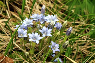 ① 06月16日 編 2025年06月16日のお山めぐりは駒止湿原です。 上部の駐車場所は満杯で下の駐車場から10時32分に出発です。湿原入口のタニウツギは咲き始めたばかり、先を行く年配ハイカーさん数人の先に出ます。湿原に入るとレンゲツツジのオレンジが目立ちますがほとんどはツボミでした。ミは前半はツボミ、後半は咲き始めでレンゲツツジも同様でした。 タテヤマリンドウは満開、少し進んでワタスゲが出てきました。前後左右ワタスゲだらけです。動物に荒らされた水芭蕉も復活してきたようです。 ワタスゲ ワタスゲのじゅうたん ![]() 白樺谷地は花は少なめ、ウラジロヨウラクが目立ちます。枯木立の先の湿原はいつもどおり、レンゲツツジを手前にしてワタスゲのじゅうたんが広がっていました。 タテヤマリンドウ ウラジロヨウラク ![]() 水無谷地に入り際の木道脇に開花したコバイケイソウ、視界が開けてワタスゲが好調です。中間部で少し小雨が吹っ掛けてきました。奥まで行くか、戻ろうか・・・。Pさんと協議の結果、奥に進んでみました。やはり吹っ掛けか小雨はすぐに止んできました。 ズミが開花しはじめた 水無谷地へ ![]() 灌木帯を過ぎると右にコバイケイソウの集団を見ます。湿原に復帰して最奥近くでUターン、往路を忠実に戻りましょう。 所要時間は2時間30分(歩行2時間14分)、花旅終了でした。 早朝は南会津町水無のシラネアオイ園のベニバナヤマシャクヤクを見に行ってきました。今が咲き始めのお花は学能堂山のよりも濃い目でした。 シラネアオイ園へ ベニバナヤマシャクヤク ![]() 別の花をアップで 同じく別の花をアップで ![]() 同園の方のお話として、咲く時期により個体差があるが、この地区のものは色が濃いとのことでした。月末辺りで再訪しましょうか |