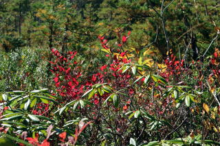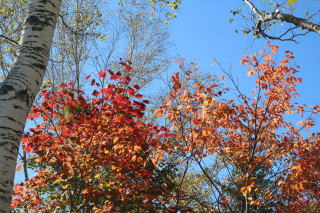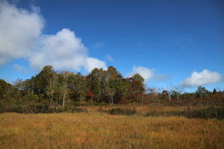 | ④ 10月15日 編 2025年10月15日のお山めぐりは駒止湿原です。 今年最後か?南郷詣での後、南郷側からジグザグ林道を登りますが色付きがありません。今年もちょっと早かったか、赤いのはヤマウルシだけのようです。管理人の車2台のみの田島側駐車場から9時40分に出発ですが、背後にマイクロバスが入ってきました。 遊歩道に入って漂う獣臭にカネキャップを一発、黄色はコシアブラか、手前の赤はヤマウルシでしょう。備え付けの鐘を鳴らして湿原に入って行くと両側ヨシが立つ木道近くには終末期のエゾリンドウが咲いていました。ヨシ帯が終わって視界が開けますが、やはり紅葉は4~5日早いか?背後から団体さんの声が聞こえてきました。 遊歩道左に ちょっと早かった ![]() 分岐で左の水無谷地・白樺谷地に向かいます。左の木の間に適期の紅葉、次の分岐で右の水無谷地へ入ります。木道沿いにヤマウルシの赤、左奥にモミジの紅葉が目立ち、デジカメに収めます。湿原の中に石楠花とたぶんウラジロヨウラクの紅い葉が目立ちます。団体さんは大谷地から帰ったか、声も聞こえなくなりました。 黄葉・紅葉 石楠花と紅葉 ![]() 管理人が水無谷地のシンボルタワーと思っている枯木の先でザックを下ろして休憩です。このあと先に行っても紅葉は望めなさそうで、本日これまでとしました。 帰路、3人の男女とスライド、大谷地分岐で大谷地から歩いてくる男性を見ました。今日はこの4人のみ、駐車場に戻るとマイクロバスはなく、普通車数台、下の駐車場には那須ナンバーさん(おそらく最後の男性の車)が停まっていました。 所要時間は1時間56分(歩行1時間32分)、のんびりハイクでした。 |