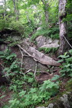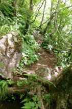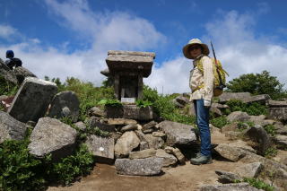 | 2025年07月12日のお山めぐりは岩手県盛岡市の姫神山です。 宇都宮を午前2時50分に出発、てんくらの情報に合わせて登山口には9時20分過ぎの到着、残り少ないスペースに車を止めて、9時37分に出発です。登り始めてすぐに後続男性3名の後になります。(´;ω;`) たたら岩の案内板を過ぎて道も登山道らしくなってきて杉林の中の登りになり、10時07分に清水社を通過します。 駐車場 清水社 ![]() 雑木帯の斜面を直登する伏木の登山道は途中で右にジグザグの踏み跡が入っており、尾根で合流し右上に進みます。左植林、右雑木の城内ルートは好ましい登山道でエンレイソウ・ヤマオダマキ等は終了、盛期のタカネアオヤギソウが現れます。さてあのお花はどこでしょうか、左右を見ながら登って行きます。 タカネアオヤギソウらしい 登山道 ヤマオダマキ ![]() 高度を上げてヤマオダマキの残り花が現れ、タカネアオヤギソウが点々と続き、道が左に方向を変えます。クモキリソウの株、せり科の花を見て左側に大きな水石、次いで笠石脇を通過します。笠石の案内板には「山頂300m」とあります。日が当たってきました。どうやら麓で見た雲はなさそうです。 水石 笠石 ![]() 雑木帯の直登の登山道の右側の岩にクモキリソウがいっぱい付いています。さて登山道は赤テープが岩々の直進に誘いますが、右にロープが張ってあり、道も明瞭で本道でした。岩場の登りは左上へ方向を変え、左奥に開けた岩場の窓はパス、2本ロープの直登箇所で先行の男性3名とスライドです。 傾斜が緩んで男女2名とスライド、イワキンバイ、ミネウスユキソウ、コメツツジ、クガイソウを見て視界が開けて来ると女性2名とスライドします。背後に展望が開けますが見えるはずの岩手山は雲の中でした。先行と思しき男女2名の後から右上に進み、11時37分に姫神山の山頂に到着でした。 右上へ トラロープの誘い 山頂の石祠にて ![]() 山頂の一角の平らな岩の上でランチ休憩です。三角点先の岩の上では男性が瞑想ポーズか、胡坐を組んでいました。S&Pも含め10名以上が屯している山頂は予報は当たりでした。しばらくして右手奥に岩手山の山頂が顔を出してきたので動画・静止画をデジカメに収めます。 山頂にて 岩手山 ![]() 岩手山の山頂も消えたり現れたりで、雲が取れる気配もありませんので撤収することにしました。おあとはあのお花の探索だけです。往路を忠実にトレースし、駐車場所には13時58分の到着でした。下る途中の岩場で2名の女性が最終スライドと思っていましたが、駐車場にはこれから向かう男女がおりました。 キンセイラン1 キンセイラン2 ![]() 駐車場(0:30)清水社(1:05)笠石(0:22)山頂(0:21)笠石(0:48)清水社(0:18)駐車場 所要時間は4時間21分(歩行3時間24分)、展望・お花探索の日本200名山の一座のピークハントでした。 新型コロナ前に北海道からの帰路、七時雨山の次に登ろうとした姫神山、天候悪化からパスしたお山は、初見のお花付きで歩くことができました。 |