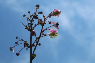 シキンカラマツ 編 今日のメインはシキンカラマツです。ネット情報からもう大丈夫かとおっとり刀で歩いてみましたが少し早かったようです。 二か所目のシキンカラマツ 4箇所目のシキンカラマツ ![]() 一か所目は全滅(環境が変わったか?)、2箇所目は南側山林の伐採で南の日光が当たるようになったためか株数減少、3箇所目は環境激変により全滅、4箇所目は時期尚早、5箇所目も周囲の雑木が伸びて減少気味、6箇所目は除草剤散布により8割り方減少、7箇所目は5分咲きで健在でした。 時間切れで4箇所は回りきれませんでした。機会があれば次回8月上旬にでも訪問してみましょう。 |