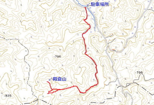 軌跡想定図![]() GPSを忘れたので想定軌跡を朱書しました。 4分の3は地形図実線路です。 |