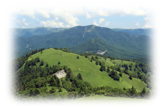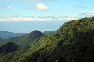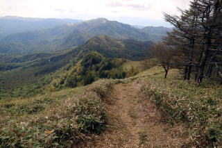 茶臼山(2006.4m)![]() 三峰山から中央奥に茶臼山 |