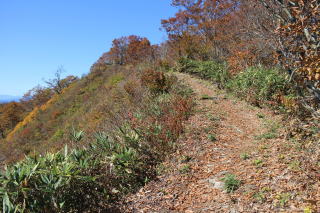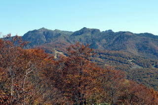 | 2025年10月24日のお山めぐりは群馬県沼田市の尼ヶ禿山です。 金精峠経由の最短ルートで138km3時間強、玉原湿原センターハウス駐車場には8時30分の到着、山支度をして8時47分に先行男女の後を追います。見覚えの路肩の清水、再訪の湿原の西端の木道脇の黄葉・紅葉を見て北端から左へ進み、舗装路に出ます。 広大な駐車場 湿原の紅葉 ![]() のんびり舗装路歩きで玉原越え起点の終点(施錠されたトンネル手前)で左の山道に入ります。いったん下って小沢を横断して登り返しは急登でした。巡視路のプラ杭を見て緩んだ踏み跡は左右に色付きかけた黄葉が目に入ります。左下からの登山道と合流(便宜上「分岐1」とします。)、直進で鉄塔敷を通過、左右のブナの大木を見ながらの登りです。 玉原越え起点のトンネル 左からの登山道と合流 ![]() 登りの途中で左下のダム湖・迦葉山からの道と合流(同「分岐2」とします。)を通過します。緩やかな登りから山頂手前までの急登はジグザグ登り、視界が開けて左側に180度の展望です。先に見える山名標柱が立つ山頂には10時34分の到着でした。 山頂へ 山頂にて ![]() 東に武尊山塊、その右に皇海山から前袈裟丸山までのシルエット、赤城山、子持山、小野子三山、浅間山はすぐ分かりました。動画・静止画をデジカメに収めていると、すぐ後からPさんと女性1名、そして男性1名が到着、男性1名と入れ替わりに男女が到着、S&Pは折り畳み椅子でコーヒーを沸かしてまったりランチ休憩です。 武尊山 赤城山 ![]() 山頂からの帰路は、2つ目の分岐で左の往路を見送って予定どおり右に下ります。コケが付いた倒木、ブナの斜面が続く緩い下り、ときおり色付き始めたモミジ等が目に入ります。次のY字路(便宜上「Y字路分岐」とします。)には案内板が一枚、左が600m、右が400mで右を選びます。 舗装路に飛び出して左奥に建物、案内図とGPSで現在地を確認、右に下ります。砂利道の丁字路は左に下り、次に舗装路の丁字路は右を選びます。湖岸を通過し登りになって右に玉原自然環境センターの建物、左が湿原入口です。 山頂で「湿原から尼ヶ禿山が見える。」との情報から再び木道に入り、東岸から冒頭画像をデジカメに収めます。おあとは舗装路に復帰して往路を戻るだけです。途中で3名の男女とスライド、駐車場には12時48分の到着でした。 駐車場(0:18)湿原入口(0:35)玉原越え起点(0:24)分岐1(0:05)鉄塔敷(0:23)分岐2(0:09)山頂(0:08)分岐2(0:12)鉄塔敷(0:04)分岐1(0:07)Y字路分岐(0:10)舗装路(0:13)湿原入口(0:10)駐車場 所要時間は4時間01分(歩行3時間04分・アルバイト18分含まず)、展望・色付き始めた紅葉の山旅でした。 |