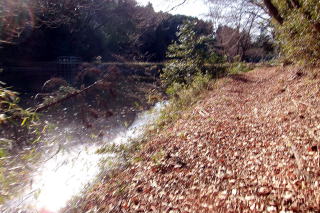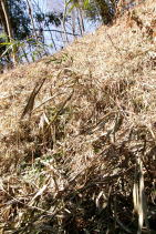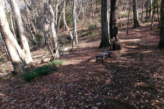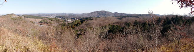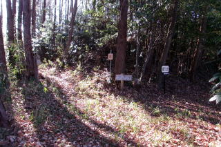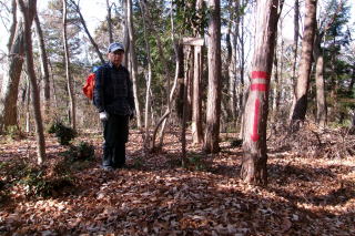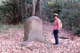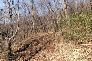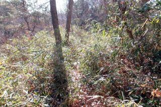 | 2025年12月19日のお山めぐりは益子町の「生田目散策路」から地形図無名峰「本郷山」です。 益子町の生田目公民館Pから9時52分に出発、入口に戻って左上の朝坂に登って行きます。視界が開けて「朝坂」の案内板、傾斜が緩んで「見返平」の案内板脇を通過します。左奥には展望台か、白地に黒の矢印の案内板(以下「➡」とします。)が奥に誘います。 生田目散歩道入口 奥へ ![]() 直進で「生田目古墳群」の案内板を見て複数の古墳脇を抜けて植林帯に入ります。右側に「千年杉」の案内板を見てY字路分岐にある大きな石の奥には「馬頭尊」の案内板があり、「➡」が右に、丁字路で再び「➡」が右に誘います。 ちょっと笹が出てきた散策路を進み、地形図実線路の十字路は「城守追分」・「生田目城跡➩1km」、「自然歩道」の板があり、左の「前沢町有林➩500m」の板を見て直進の「自然歩道」に入り「生田目散策路」から離れます。 馬頭尊 城守追分 ![]() 4分で右下からの地形図実線路と合流、すぐに右下から破線路と合流し葉落ちの右下の木の間に展望が開けます。左に進んで少し下り、明瞭な踏み跡を登り返して、益子町有林の前沢山の西端に出ます。 ちょっと小笹が 右下から実線路 ![]() 南東進してすぐに図根三角点を見て、左に踏み跡を進むと視界が開けて芳賀富士から高館山・今日の目的の本郷山までパノラマが広がっていました。本線に戻って南東進、2回目の三角点をデジカメに収めて視界のないピークを撤収、再び南東進です。 ↓芳賀富士 ↓高館山 ↓本郷山 ![]() 少し下って登り返した190m級の山頂最高点は平らでベンチが一基設置があり、南の一角が開けて山本集落から大郷戸アルプスの展望を肴に1時間早いランチ休憩でした。 ベンチが一基 大郷戸アルプス ![]() 東進して12月06日の舗装路(生田目林道)に出て左へ下り、幹線道路を右折し峠で左側の青いポールの立つ地点から沢の右岸に付いた地形図実線路を詰めます。 最奥の270度急斜面で道型は消失、右上に獣道が登っていそうですが手掛かりなしで左斜面を登って上部の水平道に出ます。これが地形図実線路のようで左に回り込んで右に方向が変わった地点で右の斜面の笹を分けます。 青ポール先へ 沢最奥 左斜面を ![]() 高いところで胸高の笹、北西尾根に出て不鮮明な地形図実線路を右上に進みます。小笹の薮から榊が出てくると道型が鮮明になって下りになります。下りきって不鮮明な案内板の立つ丁字路で、右からも下れそうですが、まずは本郷山に向かって直進で「まわり道」と読める案内板とベンチ一基の鞍部を登り返します。 ここから右上へ まわり道分岐のベンチ ![]() 登り切って本郷山南西端の分岐点にはベンチが一基、でも展望は木越です。奥に道が下っていますが、左に進んで名板一枚の待つ本郷山の山頂です。展望なしでそそくさと撤収です。 再びベンチが一基 本郷山にて ![]() 奥にも踏み跡が進んでいますが、南西の分岐まで戻ってPさんと協議、さっきの分岐はパスして南東に下ってみました。下りきってGPSを見れば前々回の引寺山の帰路の破線路近くの最低鞍部でした。奥に赤テープが下がっていますが、右に下ることにしました。 植林帯の下りは両側に張られたロープが右下に誘導します。視界が開けると左に池、そして集落を通過し舗装路に出ます。左の民家の年配男性から情報収集、前沢山・本郷山を見ながら山名を確認しました。おあとは84m評点を通過し、北西進です。 本郷山・引寺山間の最低鞍部へ 堰き止め湖右岸を ![]() 自動車を避けて左の田んぼの中の舗装路から用水路沿いに北西進、左に「吉原橋」で右折、次の十字路で前々回下ってきた小尾根横断の舗装路へ直進し、前回降りてきた生田目林道合流の丁字路を通過し幹線道路に出て右折します。 次の十字路で交通安全祈願の石仏を見て右折、左に泥掛け地蔵を見て道なりに左に曲がると「➡」があり、お城にお誘いで、ここから「生田目散歩道」に復活でした。ひとしきり城郭見学、曲輪・主郭・空堀を見て少々奥に進んで撤収です。説明板にもある「館山」は支尾根の末端でした。 館山(生田目城跡) 最奥の空堀 ![]() 舗装路に戻って北上、神社前から右上の往路の登山口を見て左の駐車場には13時40分の到着でした。 公民館P(0:24)城守追分(0:15)図根点(0:03)三角点(0:07)前沢山展望ピーク(0:20)本郷山取付きの峠(0:29)本郷山(0:30)舗装路84m評点(0:38)館山取り付き(0:07)館山(0:07)同取り付き(0:07)駐車場 所要時間は3時間54分(歩行3時間07分)、望外の展望と小藪の周遊ピークハントでした。 参考 国土地理院電子地形図「真岡」 益子町公式ホームページ・・・ ましこマップ・・・生田目散策路&コスモス畑 12月06日の引寺山で回れなかった本郷山・館山のリベンジ歩きも2025年中に終わることができました。 |