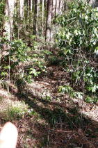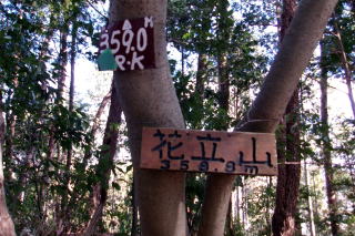 2026年01月22日のお山めぐりは常陸大宮市高部の花立山です。 「道の駅みわ」に寄ってからちょっとお山歩、花立峠から西上、花立自然公園の駐車場から11時08分に出発、峠まで下って反対(東)側の斜面に付いた踏み跡を登ります。すぐに植林帯に入る踏み跡と右上直登の踏み跡に分かれますが、直登を選択します。) ![]() 踏み跡が消えて右に進む獣道を選択、途中で左上に登る踏み跡に乗り換え、踏み跡が水平になった所で薮の少ない斜面を登ります。植林帯に入って左下から右上に登る明瞭な道型は地形図破線路でしょう。尾根に出て小さなピークは左から巻き、再び細尾根の先で右に進む明瞭な道型を別れて直登します。 右下からの尾根に乗り、左上に進む地点は3本の木に赤テープが巻かれていました。少しの登りで傾斜が緩み、小さなピークを越えて左に方向を変えます。最後の登りで下草に榊が目立つようになると三角点とRK氏の板、「花立山」の名板の待つ山頂でした。杉植林で展望なし、寂しいピークハントでした。 ![]() 帰路は往路を忠実に戻りますが、途中で往路と別れて破線路の道型を辿ってみました。杉植林内で榊がいっぱいの斜面の道はときどき消失、やはり植林と雑木の境を直登がよさそうでした。駐車場所には12時05分の到着でした。 駐車場(0:03)花立峠(0:28)山頂(0:17)花立峠(0:05)駐車場 所要時間は57分(歩行53分)、小さな地形図無名三角点峰のピークハントでした。 参考 国土地理院電子地形図「上小瀬」 大子山岳会さんの茨城五百銘山 |