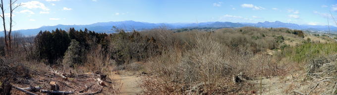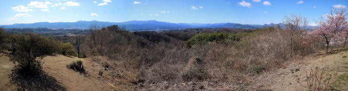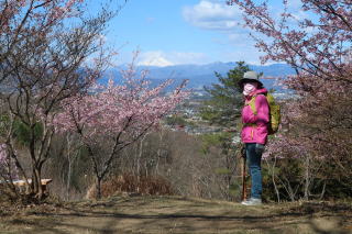 | 2026年03月08日のお山めぐりは群馬県富岡市・安中市境の崇台山です。 長学寺入口の駐車場はまだまだ余裕の先客4台、9時36分に出発、少し戻って左上の階段道に誘う案内板に従って登って行きます。登山道の右に満開の梅、左上にロウバイを見て道なりに左上、そして右に方向を変えて尾根上の緩い登りになります。 余裕の駐車場 登山道入口 ![]() 緩いアップダウンの明るい雑木の尾根、左下に長学寺を見て左下からの登山道と合流です。今日二つ目の急登は線路の枕木?の階段道で丁字路分岐は案内板が右に誘います。細尾根の鞍部から登り返しで左上に誘う幅広踏み跡を覗いてみたら大当たり、伐採ピークから冒頭画像のほか180度のパノラマでした。 伐採ピークからは東西御荷鉾山から浅間山まで ![]() ピークを横断して右に下れば本線復帰、細尾根の鞍部からの緩い登り返しで右から道が合流します。最後の登りで崇台山の山頂到着です。一点360度ではありませんが好展望の山頂でした。懐かしの東西御荷鉾山・オドケ山、赤久縄山・稲含山方面、特徴ある四又山・鹿岳、白峰は御座山のようです。 山頂からのパノラマ ![]() 山頂標柱前、浅間山をバックに証拠データを収集、河津桜やパノラマの動画・静止画をデジカメに収め、ハイカーの多い山頂を撤収、安中側に下ります。 山頂にて 河津桜と浅間山をバックに ![]() 視界が開けて安中側の駐車場を見て丘の斜面の下りで情報収集の「大キリ」に寄ってみることにしました。「日本一の巨大キリ」の案内板の誘いで右の沢沿いの緩やか登りです。見上げる高さの大キリは花の咲く時期が最適期か、崇台山に登り返しできそうですが、今日は天王山(天王山城跡)経由で撤収です。 安中側の登山口方面の展望 巨大キリ ![]() 募金箱のあるらしい駐車場の5台を横目に西進です。途中で左折の案内板を見落として3分ほどアルバイト、「学習の森」先の左上の舗装路に入ります。雑木帯に入る直前に左上の未舗装路に誘う案内板、緩い登りで中世城郭の天王山に到着でした。伐採が入り、木の間からいくつかお山が目に入りました。 天王山方面 城郭説明板の下に天王山の名板 ![]() 尾根伝いに南東進、途中で右の舗装路に下り南進、案内板に従って崇台山・長学寺方面に無事方向変換(直進してしまうところでした。)します。次の分岐で右の長学寺方面へ進んで行くと両側伐採で視界が開けます。U字に方向を変える地点は南方が開けており、約90度のパノラマを肴に大休憩です。 ここで左へ 展望所でランチ休憩 ![]() おあとは長学寺経由で下り、駐車場所には12時31分の到着、群馬百名山の1座終了でした。 駐車場(0:13)長学寺分岐(0:09)丁字路分岐(0:05)290m無名ピーク(0:04)崇台山(0:14)日本一の巨大キリ(0:05)安中側登山口(0:26)天王山(0:22)ランチ場所(0:04)長学寺(0:06)駐車場 所要時間は2時間57分(歩行1時間48分)、展望・河津桜の小さな周遊ピークハントでした。 再訪の桜山と鬼石の狼石像か迷いましたが、ネット情報から桜山の河津桜は終盤かと崇台山にしました。やはり暖冬か一部の河津桜は盛りを過ぎつつありました。今日はもう一か所経塚山を忘れましたねえ。次回があるなら4月の桜の時期でしょうか。 |