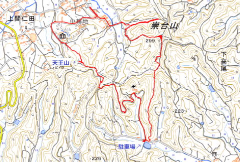 | 崇台山ほか1座 崇台山(299.1m)・天王山(280m) ![]() 手前の伐採ピークから オキナグサの時期に考えていた崇台山 ネットを覗けば河津桜が・・・。 |
